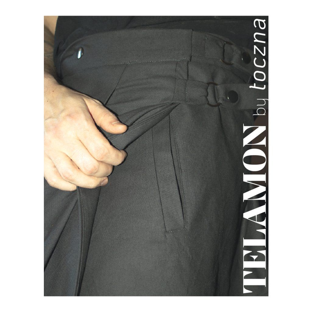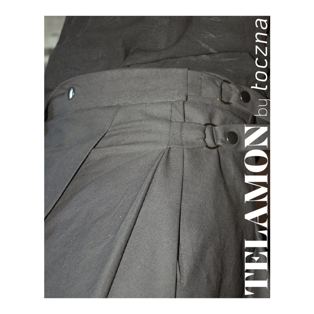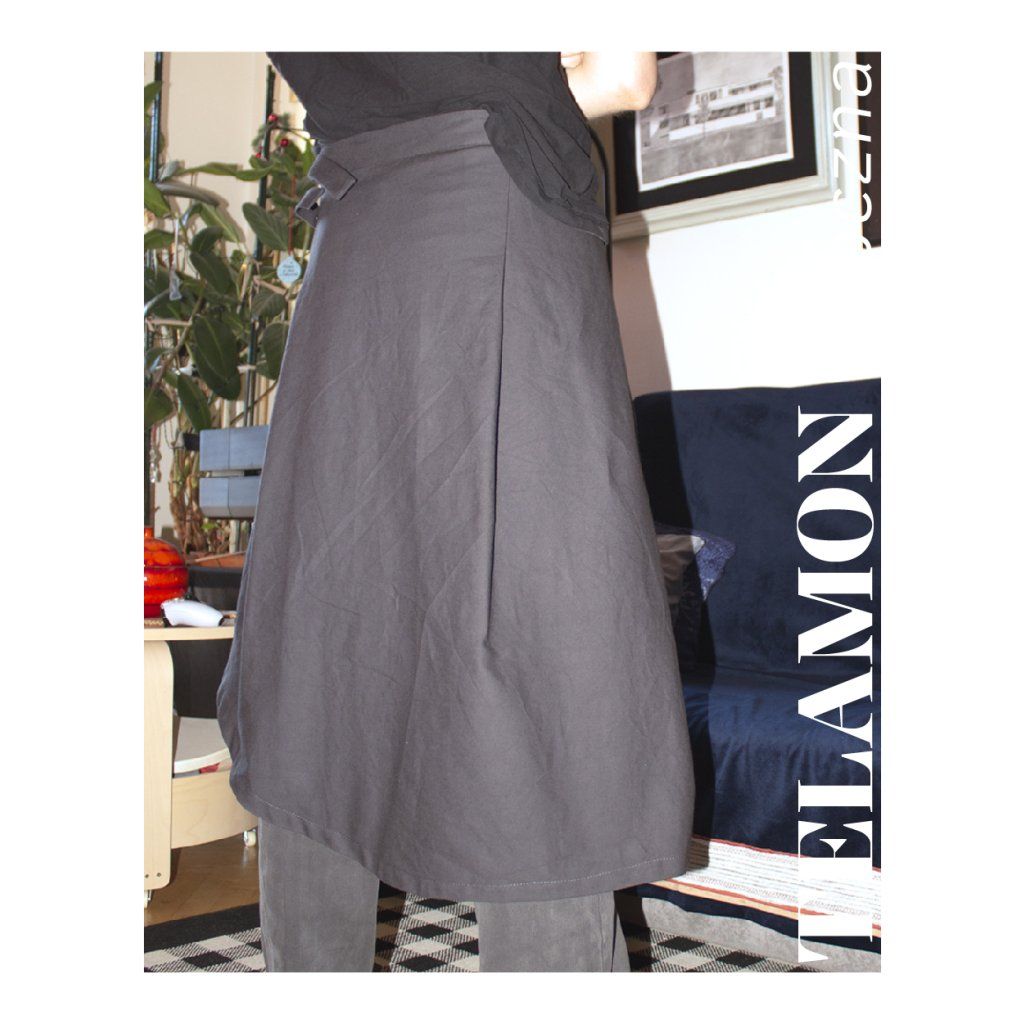 Autorka o Telamon píše: „Motivací pro tvorbu tohoto střihu byla prosba mého přítele, abych mu ušila sukni na míru. Nakonec jsem se rozhodla místo jednoho custom kousku připravit střih s podrobným návodem, podle kterého by si ji mohl ušít sám. Na fotce je můj přítel (aka nejlepší partner pod sluncem) v sukni, kterou si vlastnoručně ušil! A já jsem mega pyšná na to, jak strašně hezky se mu to povedlo.”