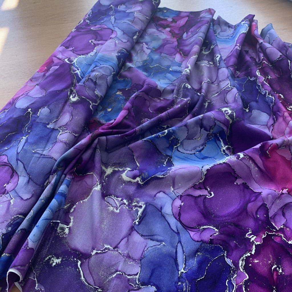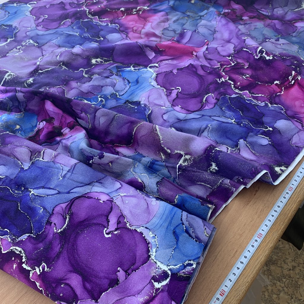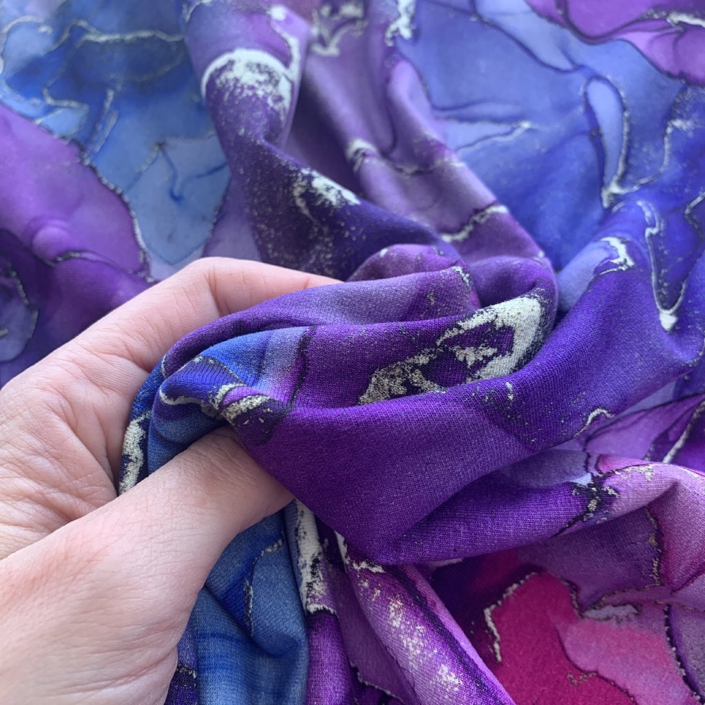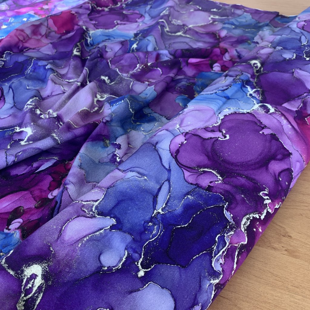 Teplákovina, mramorovaná abstrakce, fialovomodrá