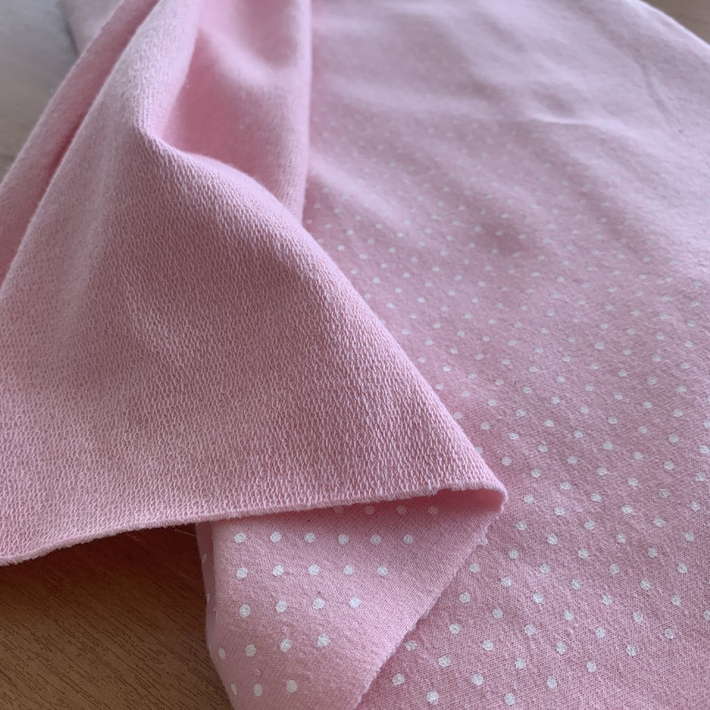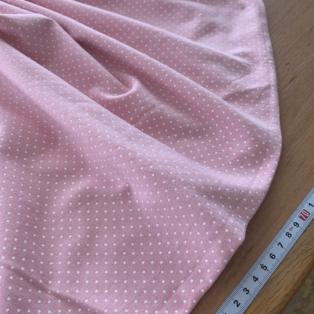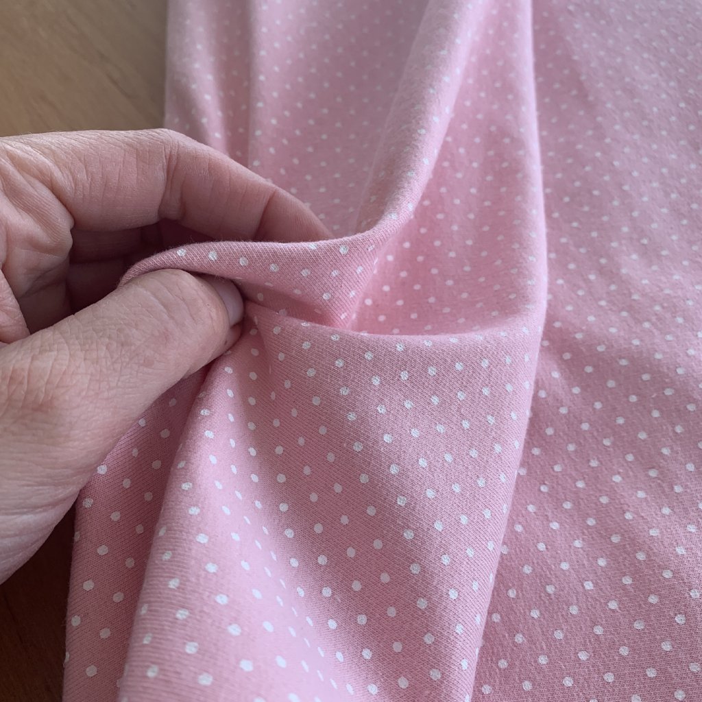 Teplákovina, růžová s bílým puntíkem, bavlna s elastanem