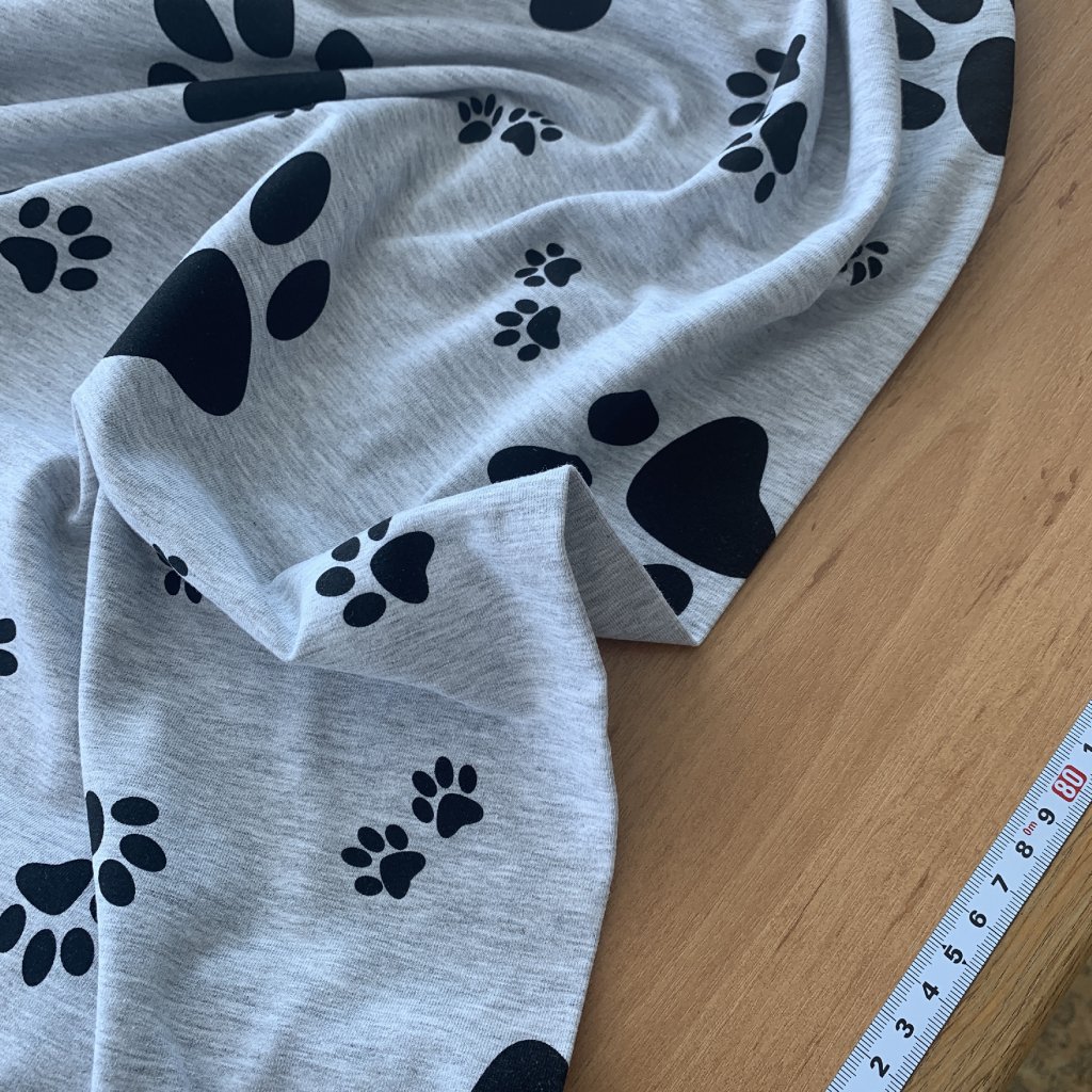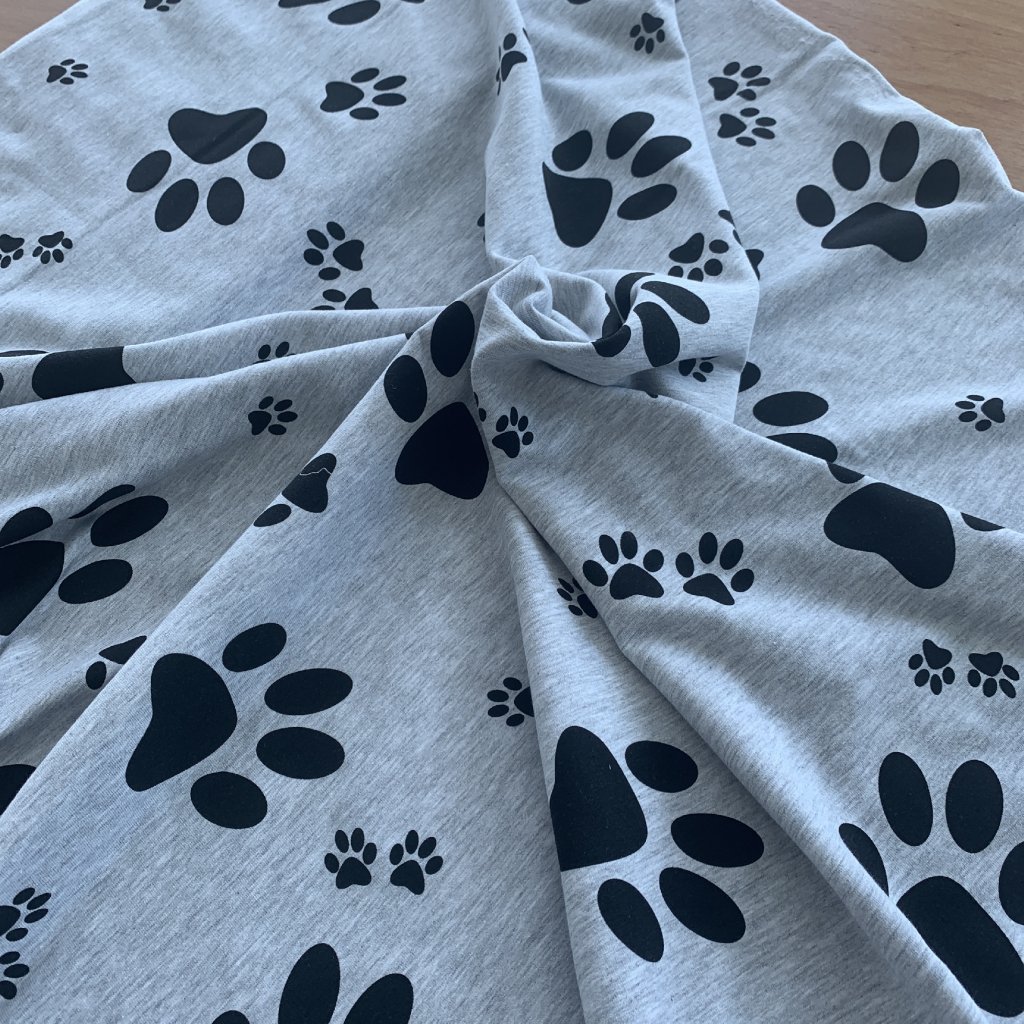 Tričkový úplet černé tlapky na šedé