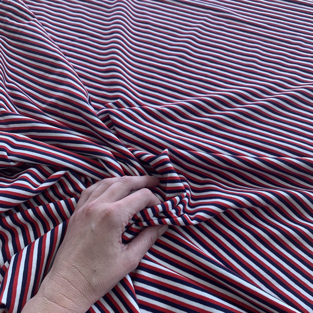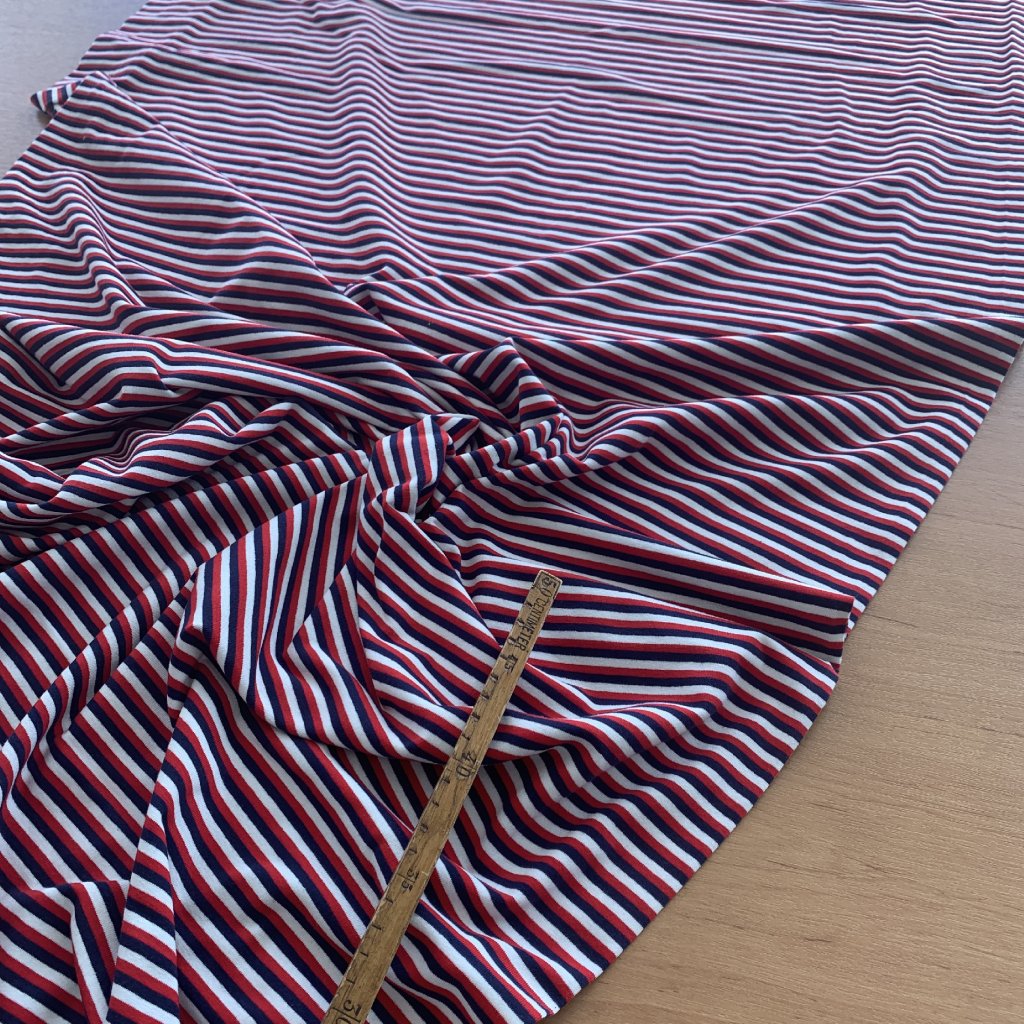 Někdy je příběh materiálů jednoduchý: Nevyužitá metráž od paní z Českého Brodu, která se šitím na zakázku živila, ale rozhodla se již nepokračovat a materiály nám odprodala k dalšímu využití. V Českém Brodě jsme naložili celou malou dodávku až po střechu a odjeli jsme plně naloženi zase vstříc ku Praze. Od té doby tyto materiály průběžně měříme, fotíme a kontrolujeme a připravuje pro prodej na našem e-shopu tak, aby ještě někomu dobře posloužily a udělaly radost.