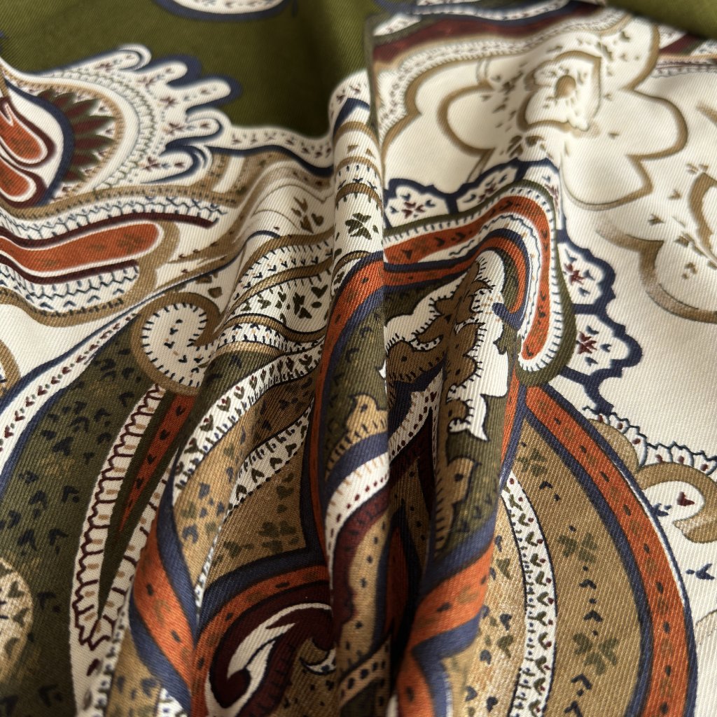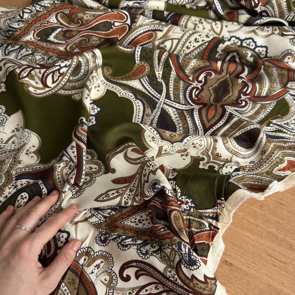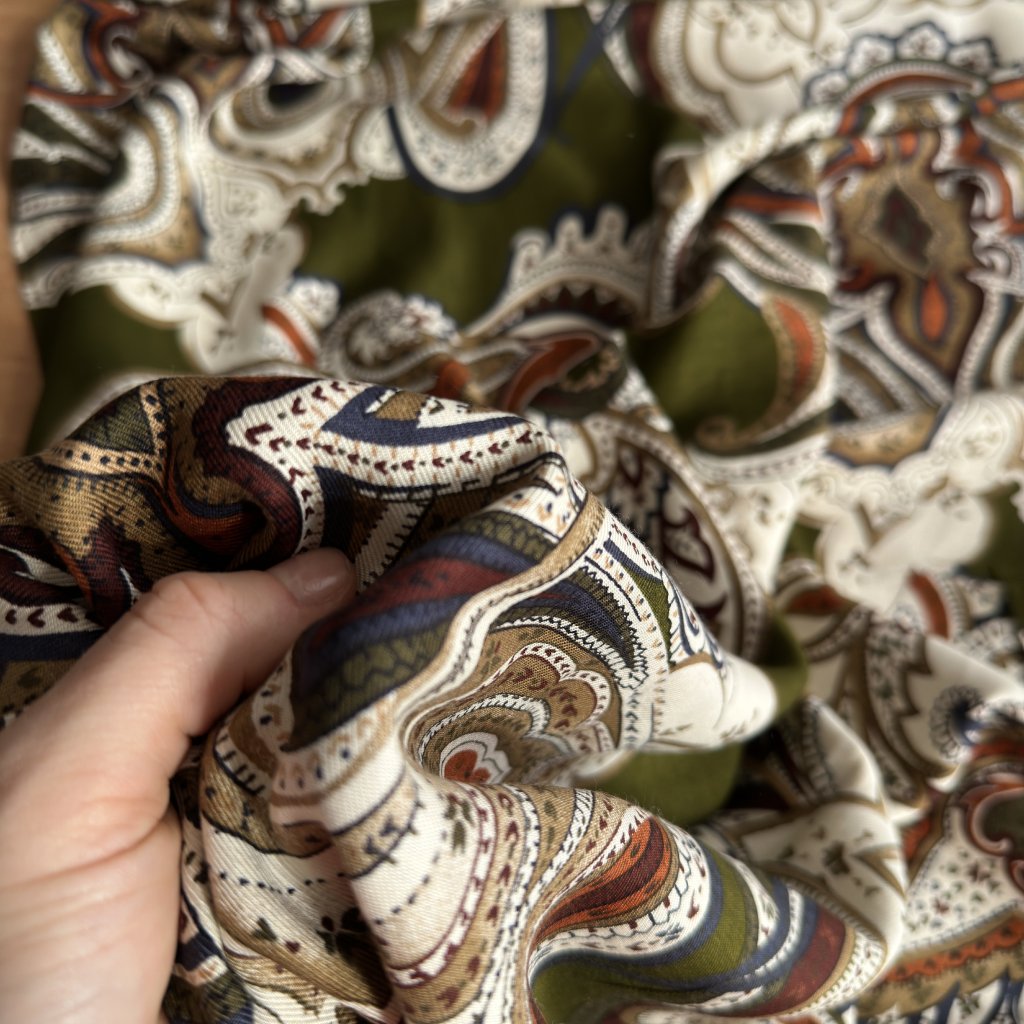 Viskózová khaki šatovka s paisley vzorem