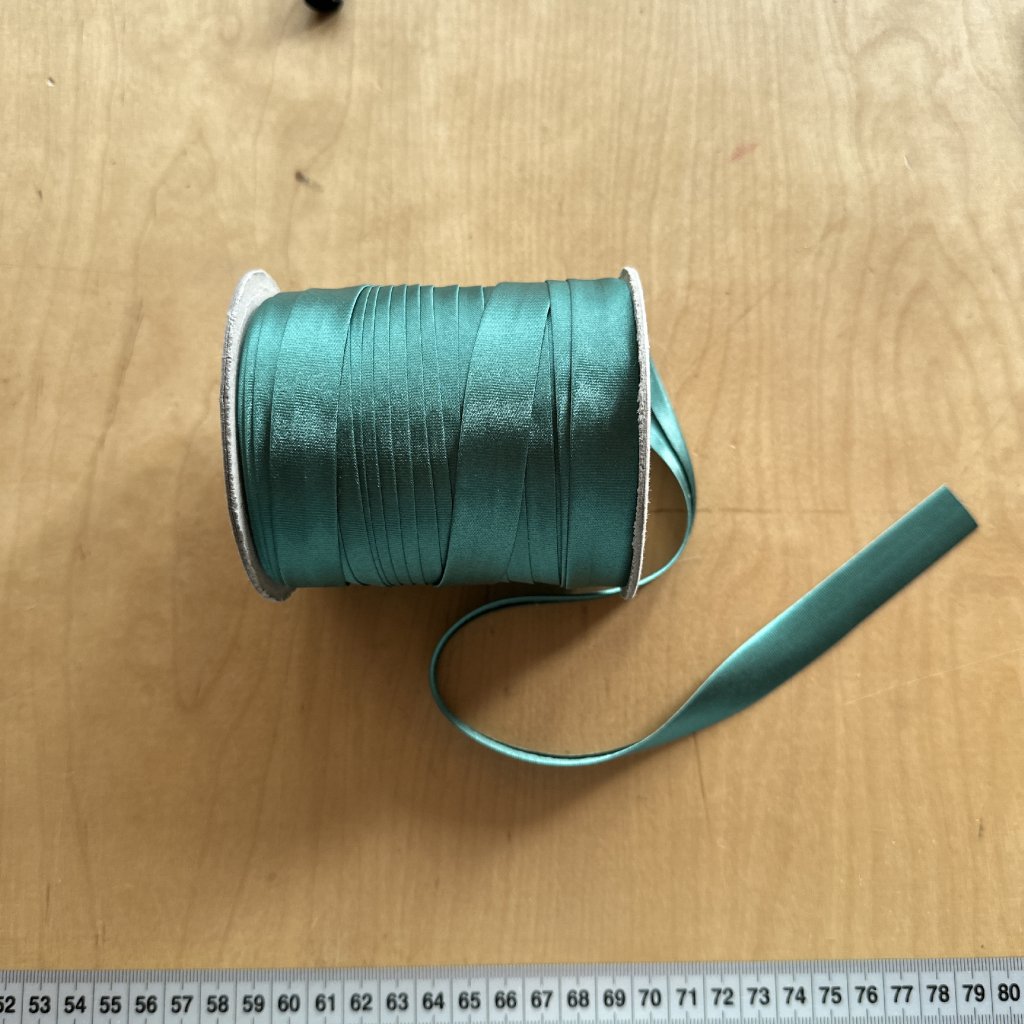 Vzorek - Atlasový šikmý proužek dark mint 15mm