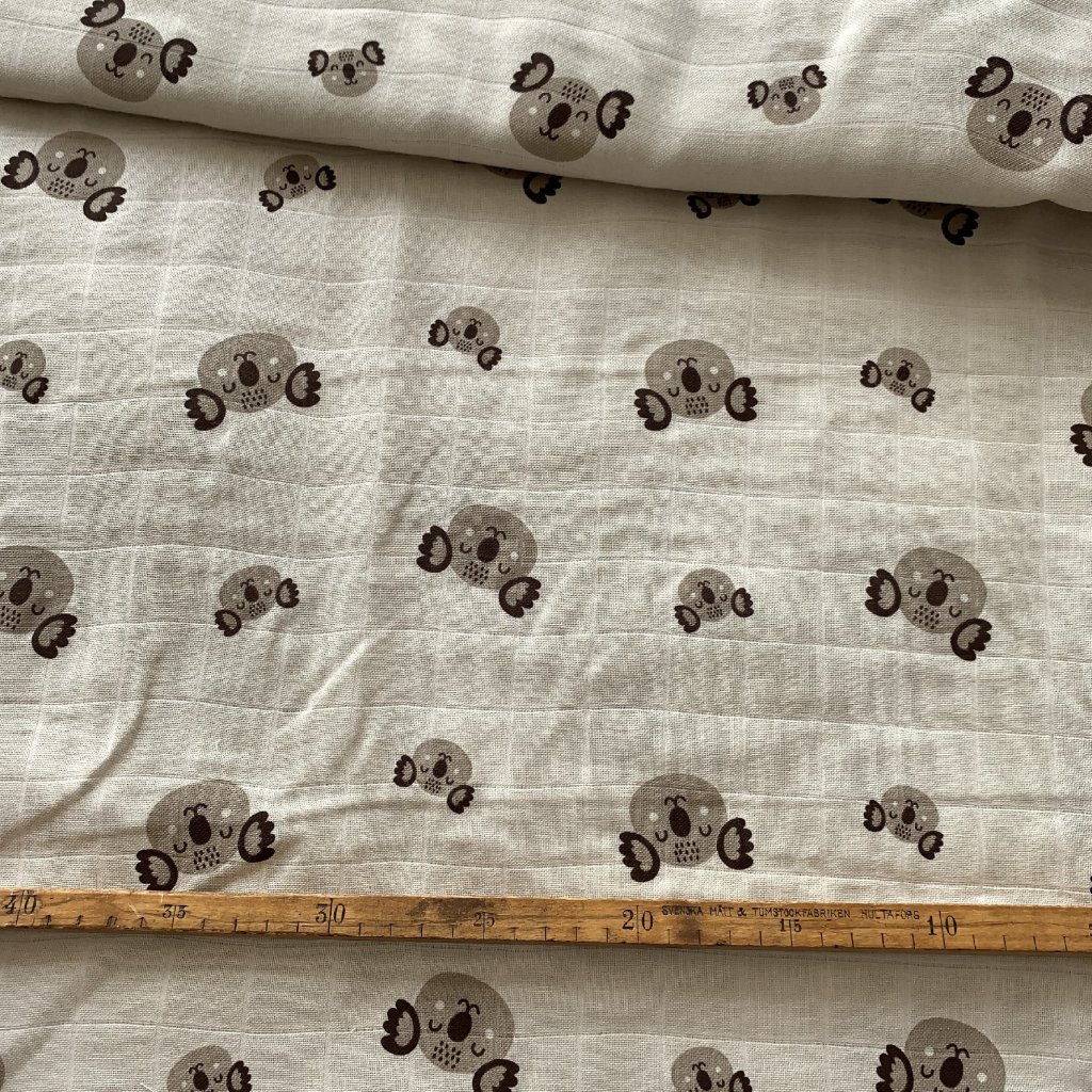 Vzorek - Bavlněná plenkovina béžová medvídek koala 1