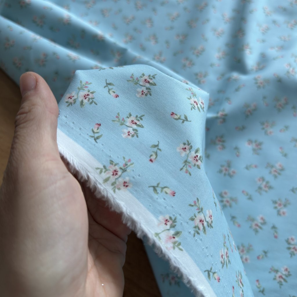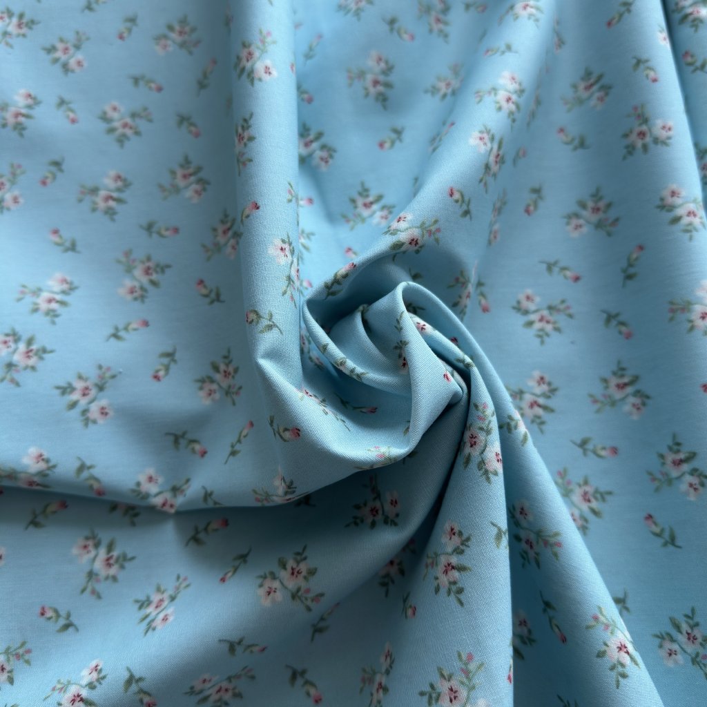 Vzorek - Bavlněné plátno/ popelín světle modré s květinami