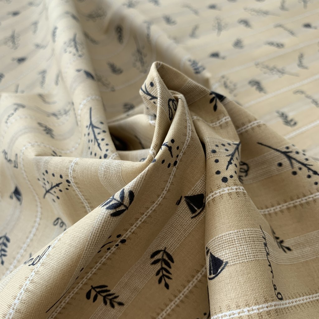 Vzorek - Bavlněné plátno béžové lodičky a větvičky 2