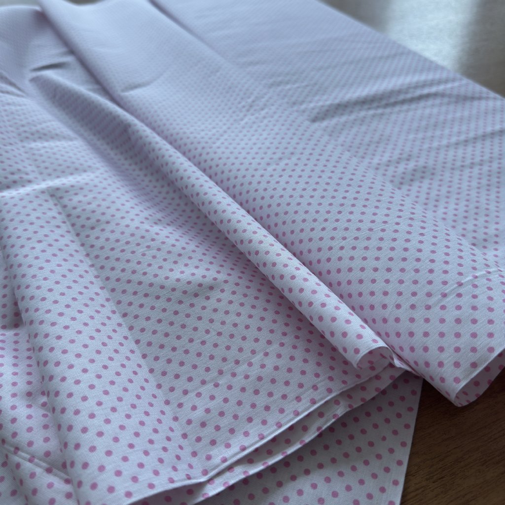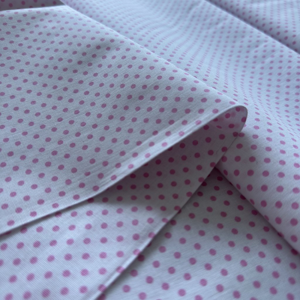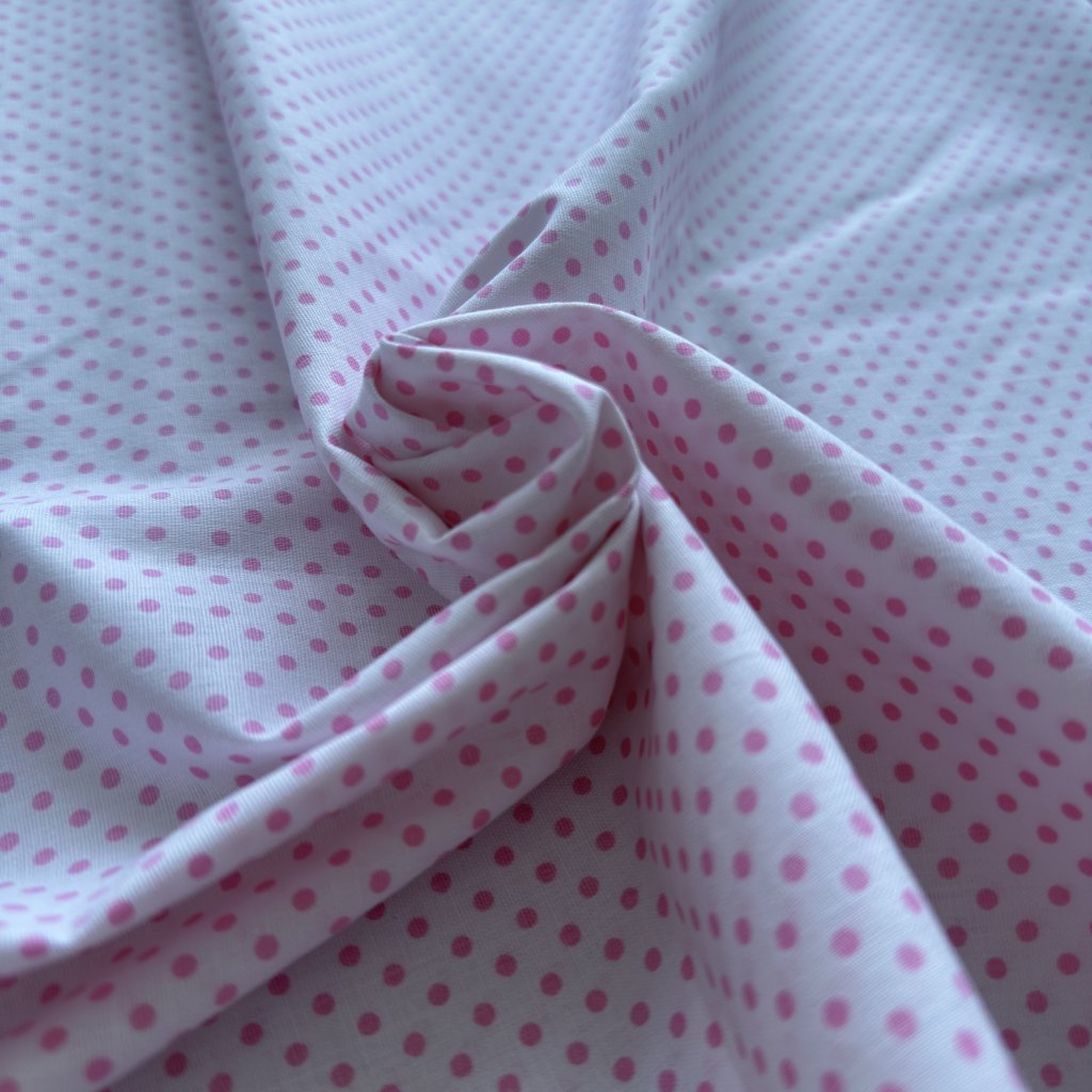 Vzorek - Bavlněné plátno bílo růžový puntík