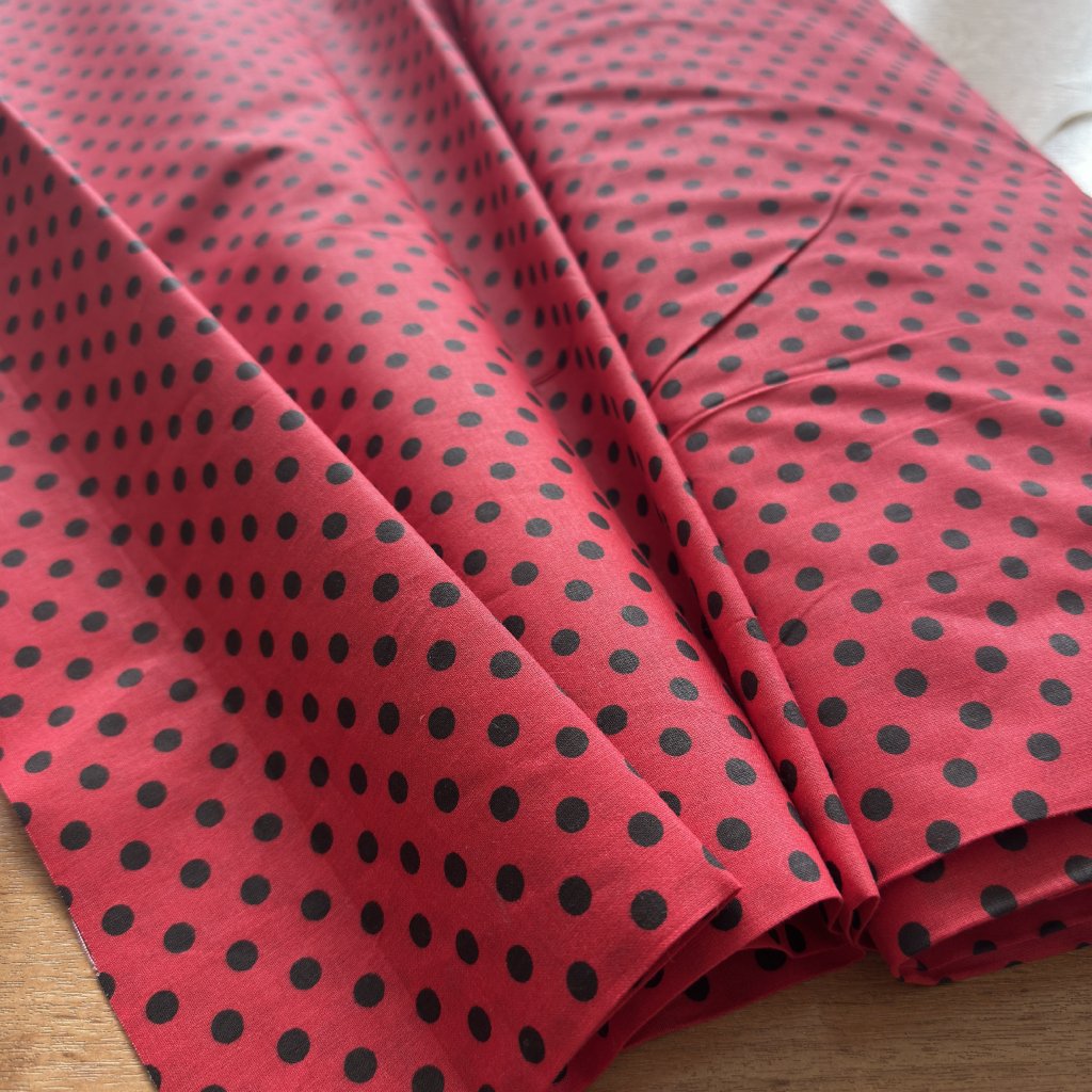 Vzorek - Bavlněné plátno červené s černými puntíky