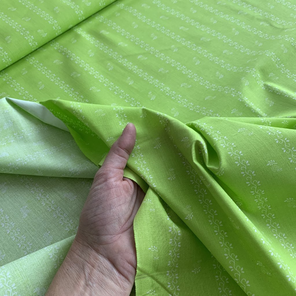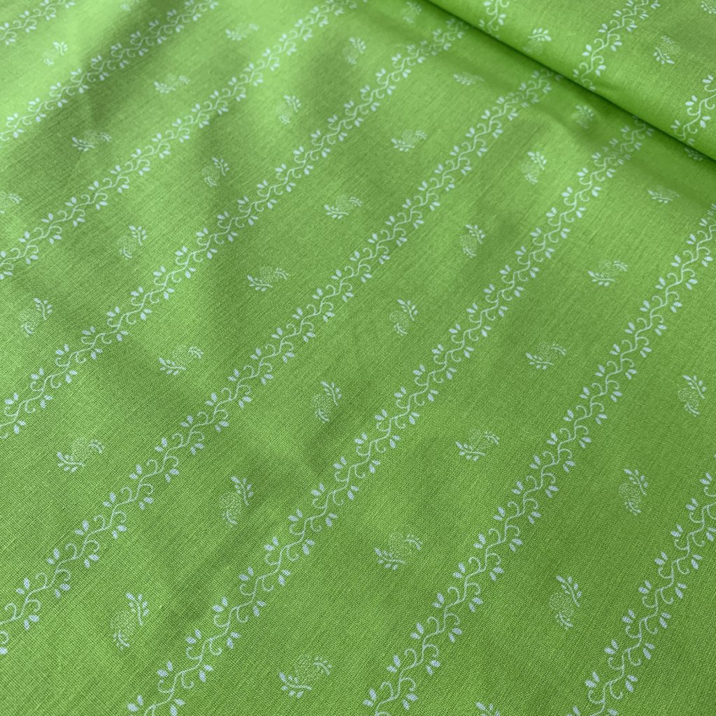 Vzorek - Bavlněné plátno kiwi zelené a bílé lístky