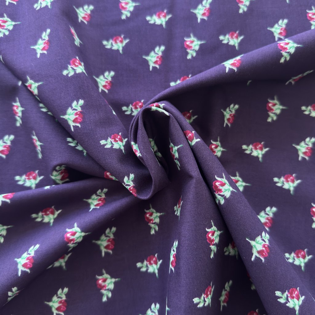 Vzorek - Bavlněné plátno květy na tmavě fialové
