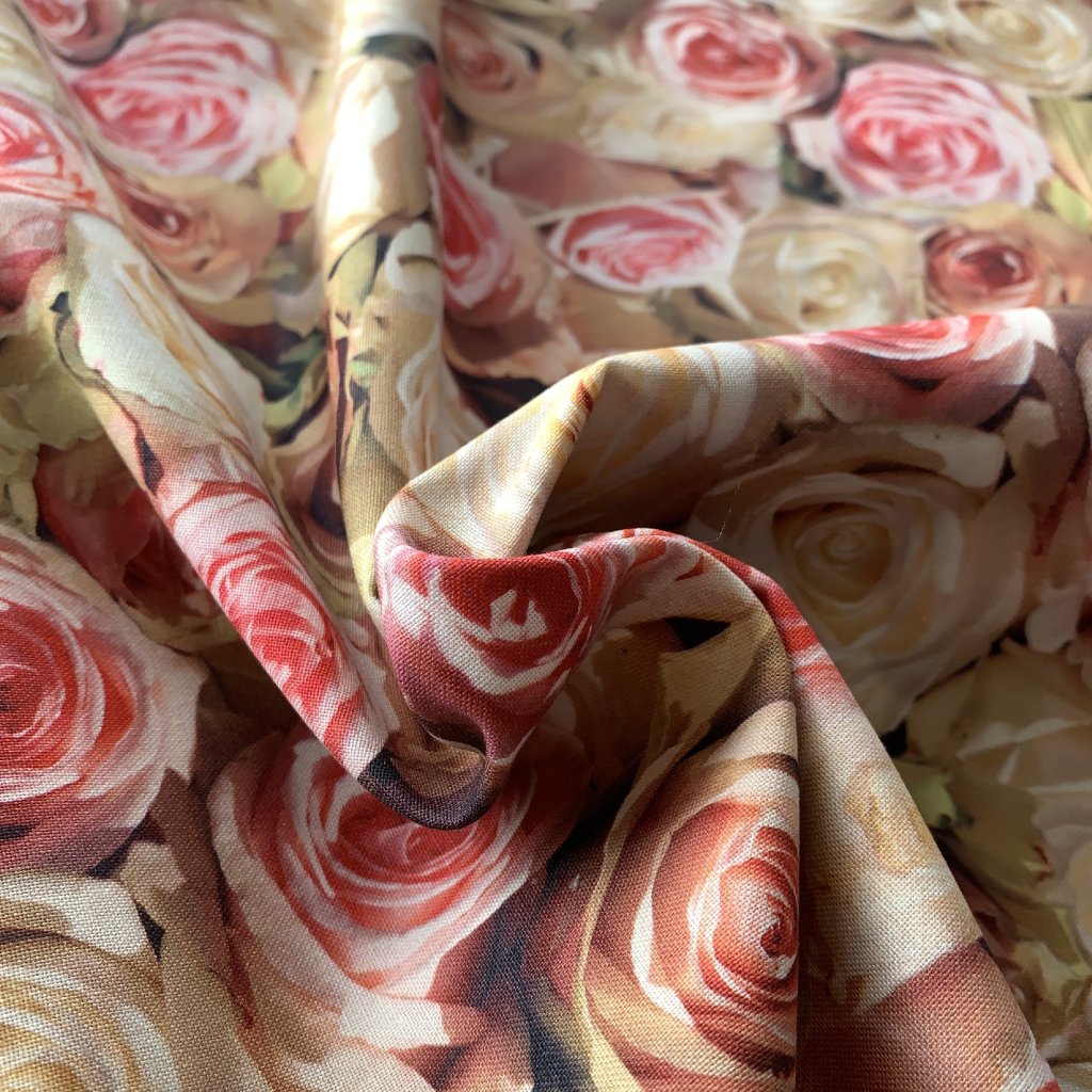 Vzorek - Bavlněné plátno květy růží