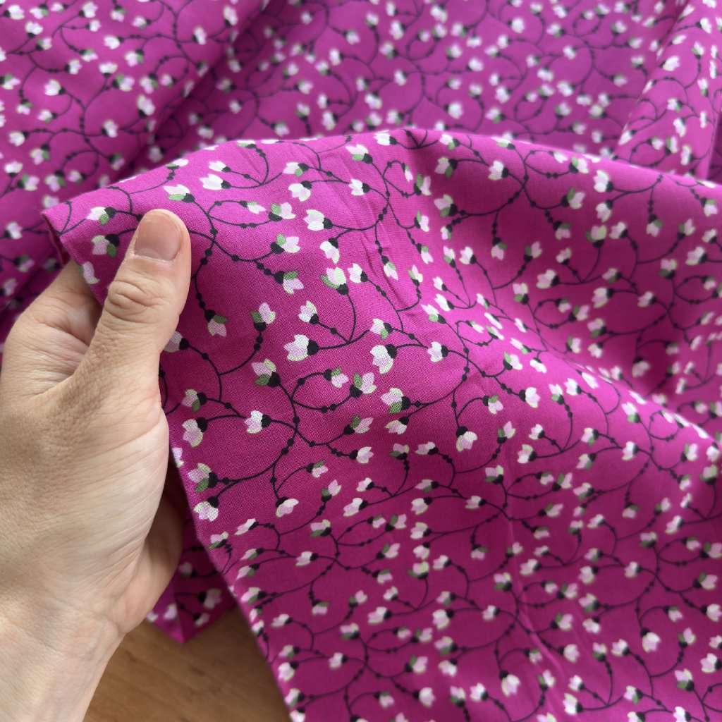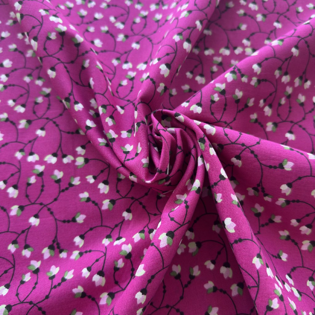 Vzorek - Bavlněné plátno/popelín sakurové kvítky na fuchsiové