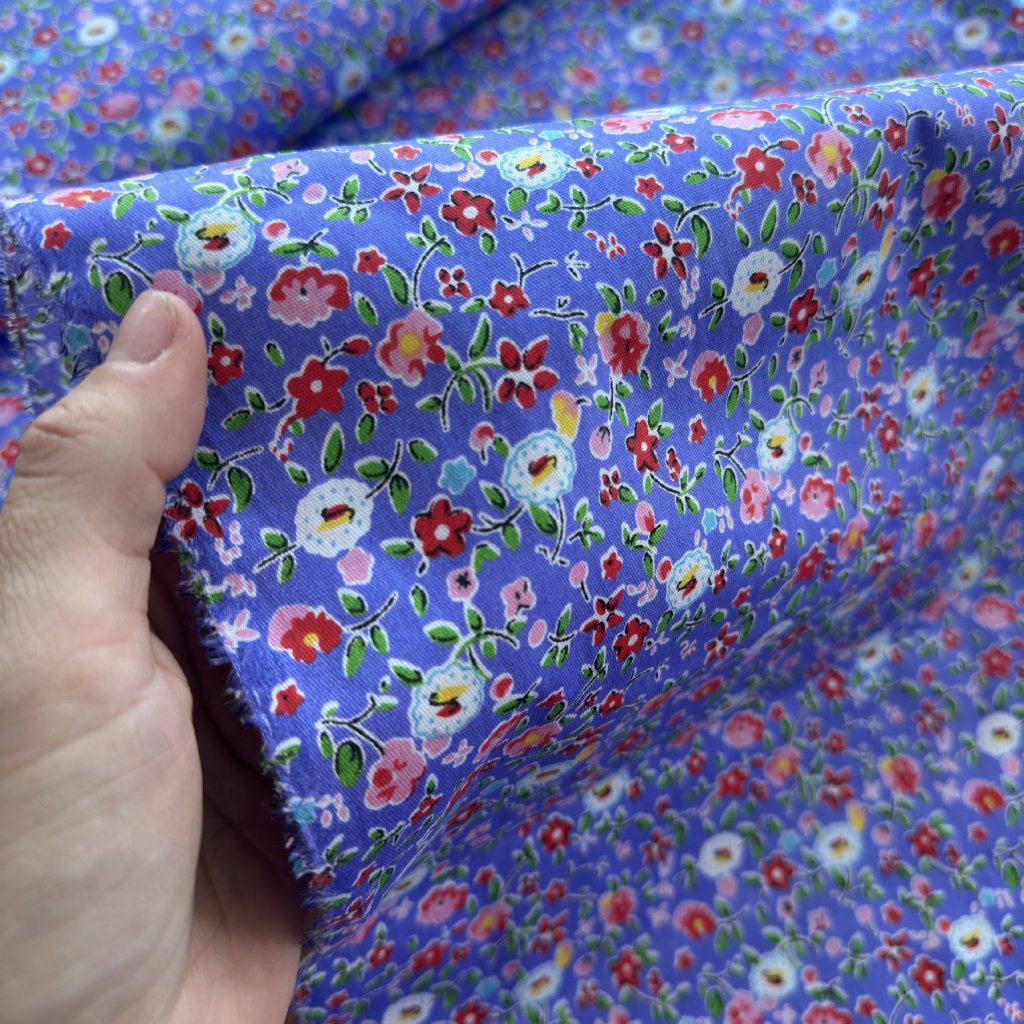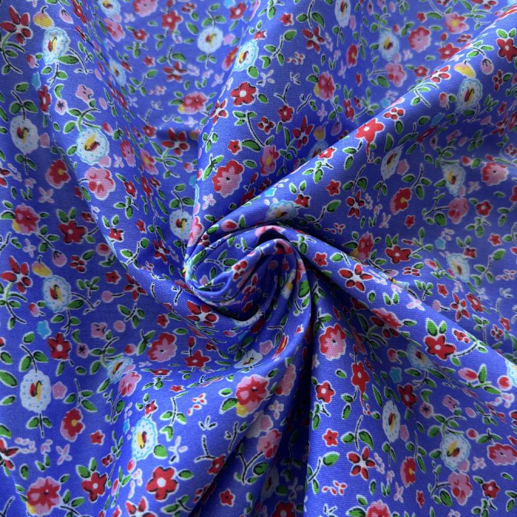Vzorek - Bavlněné plátno retro kvítí na fialové