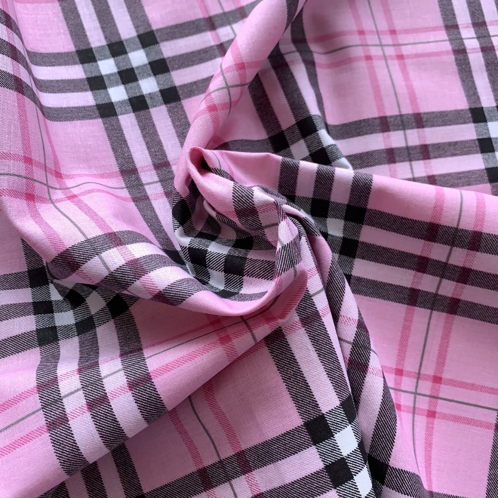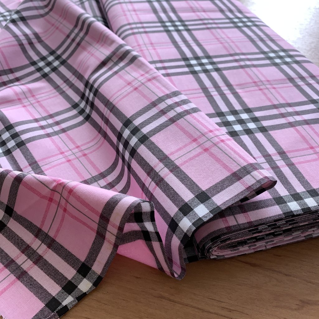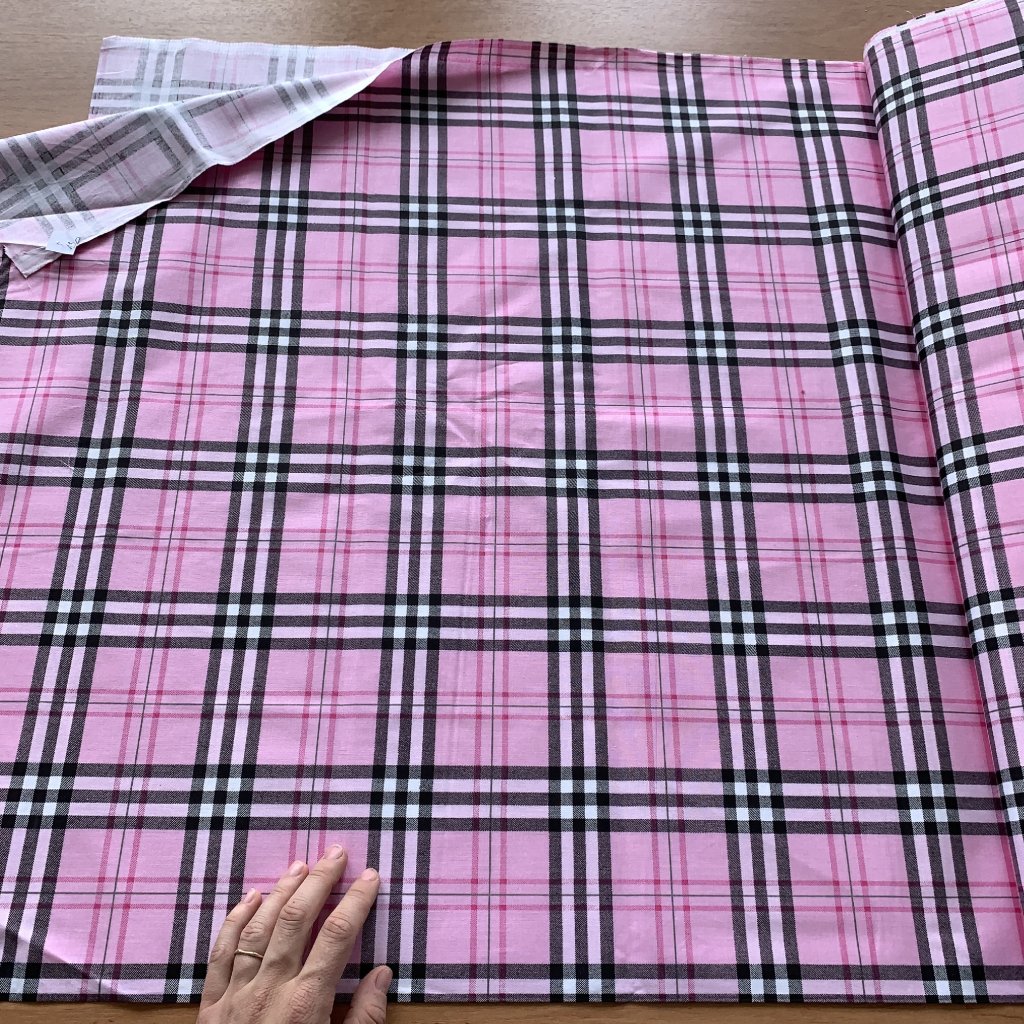 Vzorek - Bavlněné plátno růžový tartanový tisk