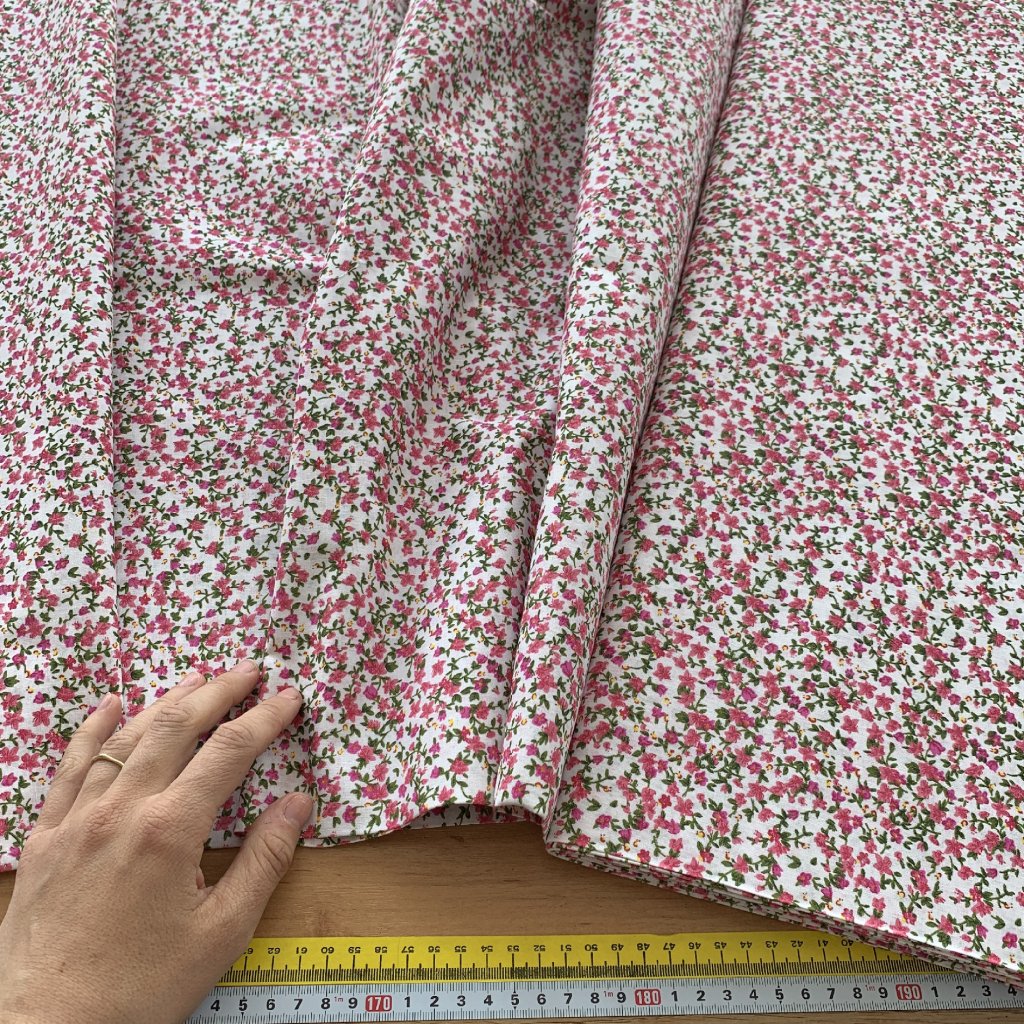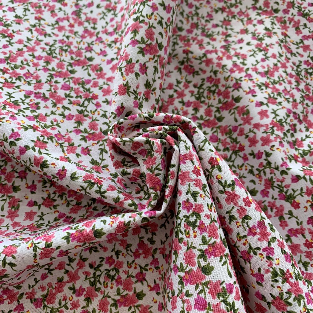 Vzorek - Bavlněné plátno s drobnými růžovými kvítky