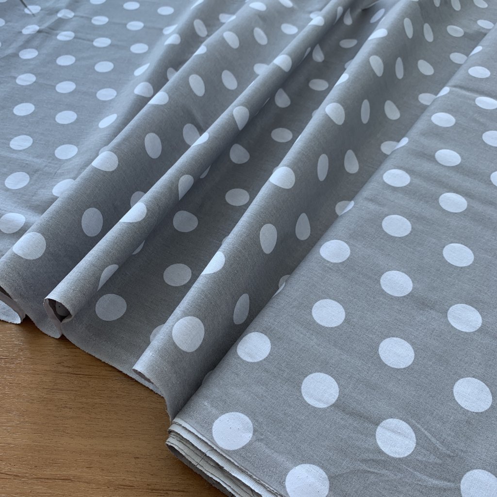 Vzorek - Bavlněné plátno šedé s bílými puntíky