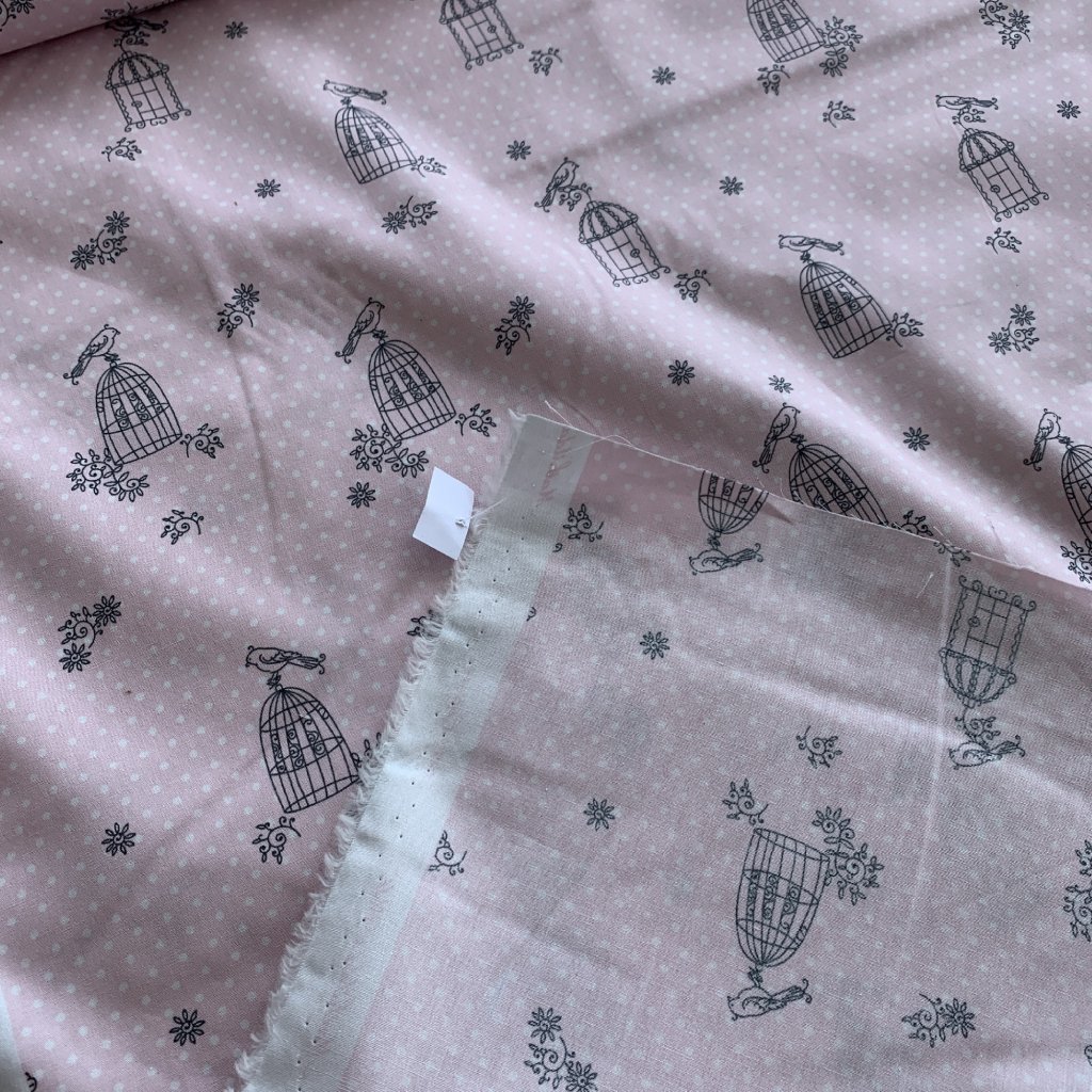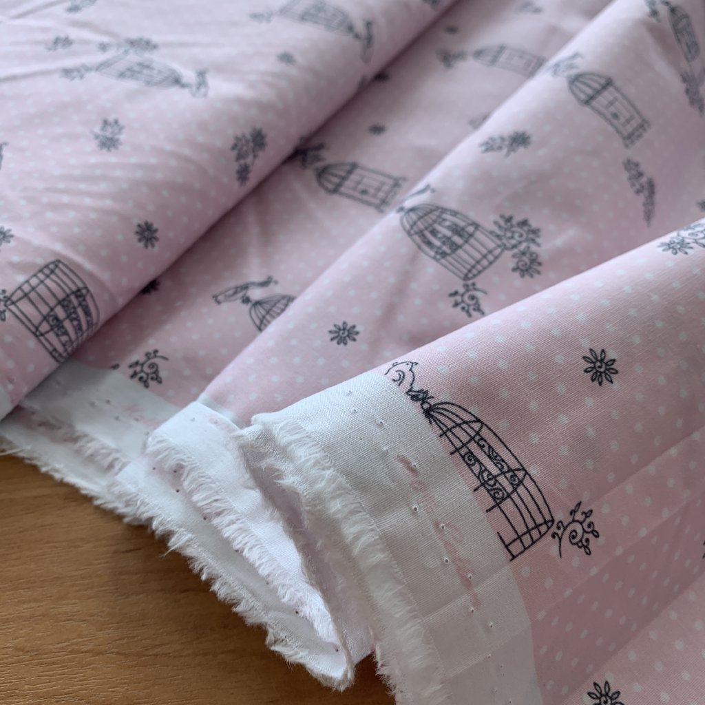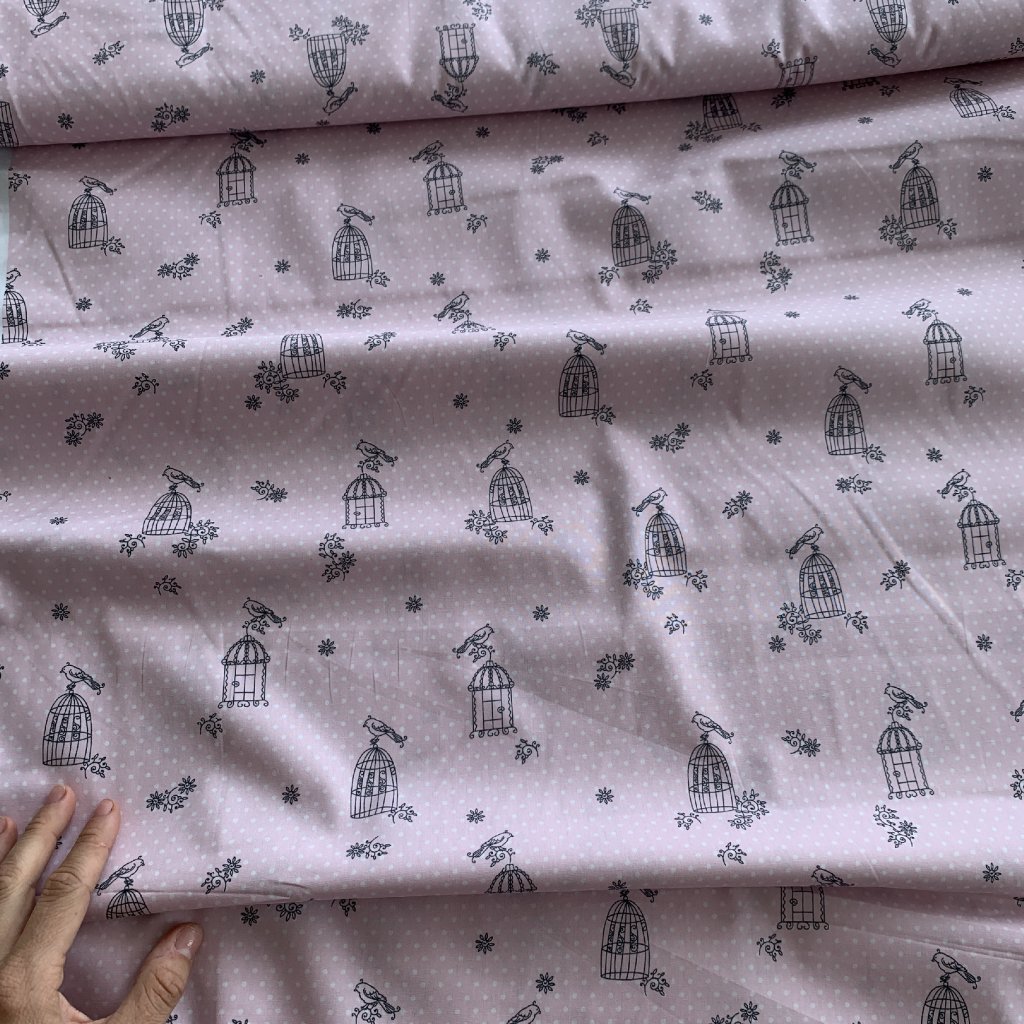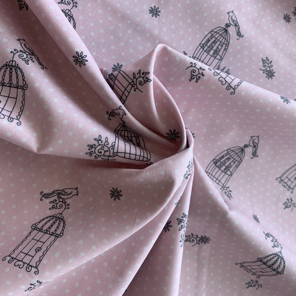 Vzorek - Bavlněné platnoz světle růžové ptáček na svobodě