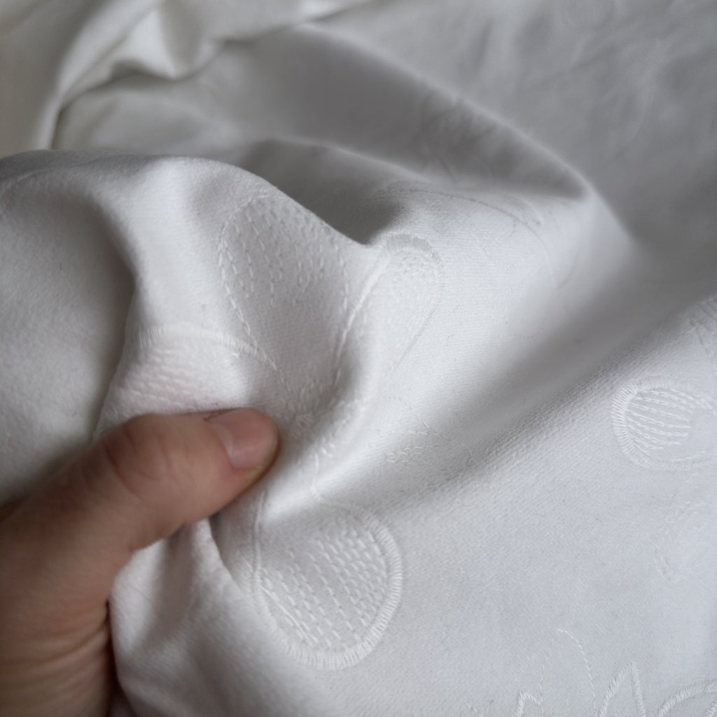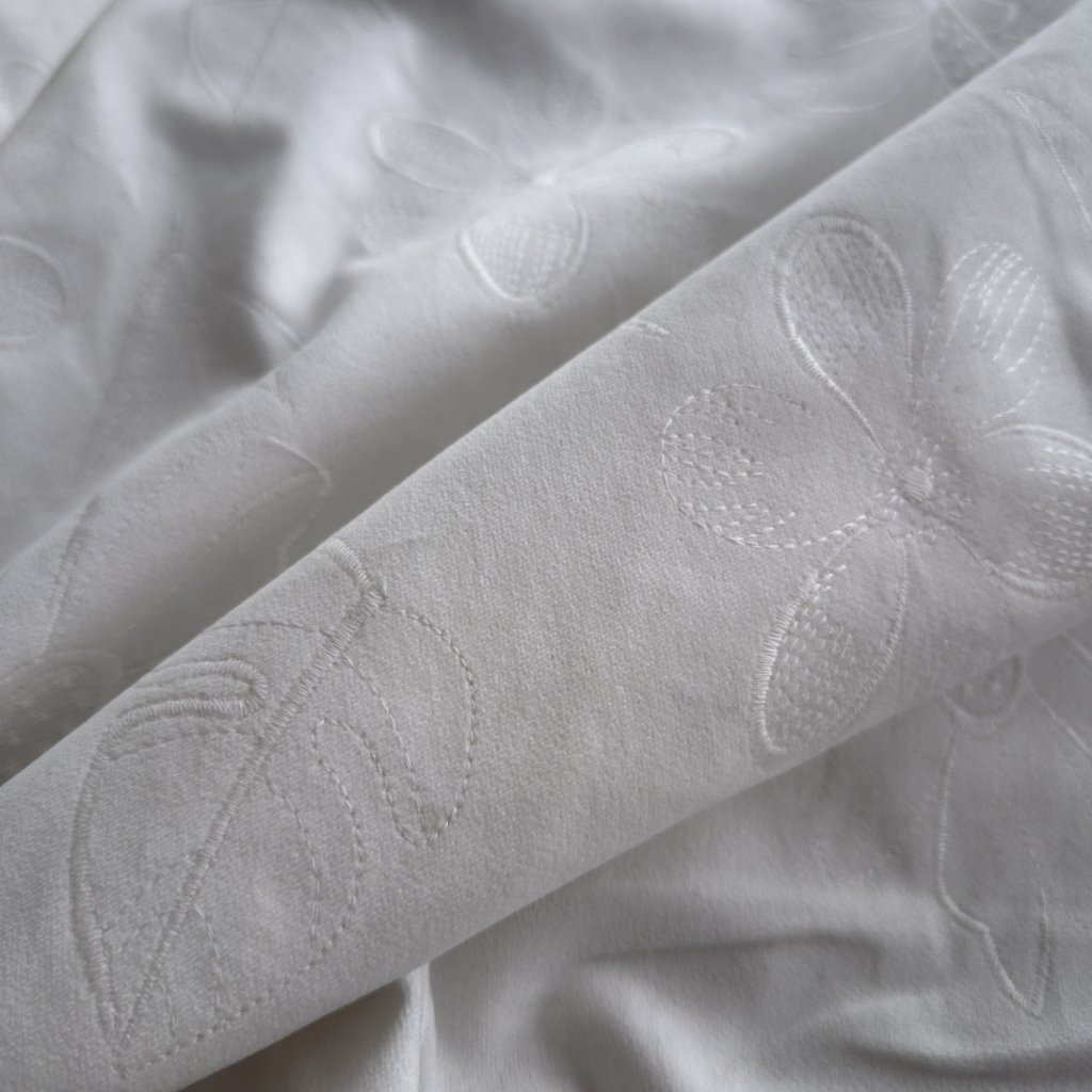 Vzorek - Bílý vyšívaný samet s květy, bavlna/el