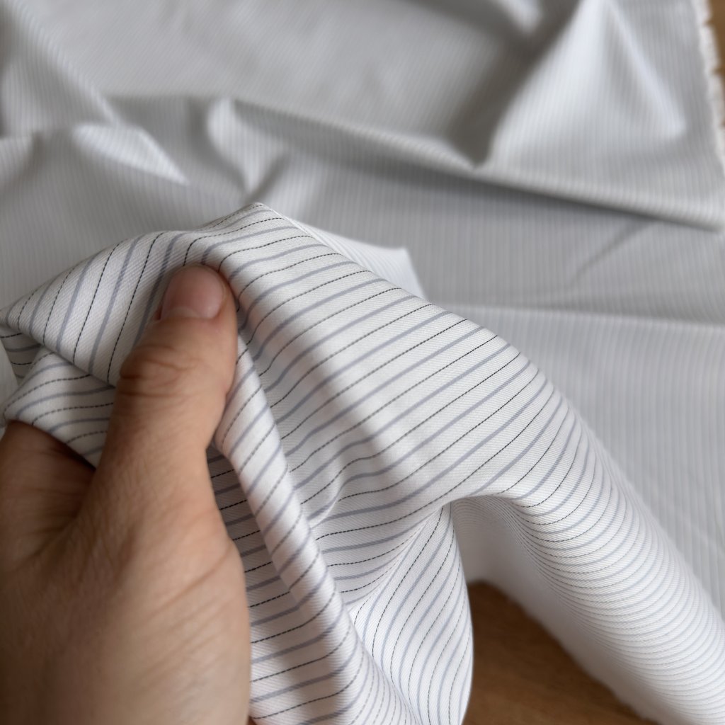 Vzorek - Košilovina, bavlněný bílý kepr, šedý/černý proužek