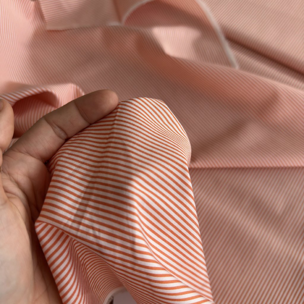 Vzorek - Košilovina bílo oranžový jemný proužek, bavlna