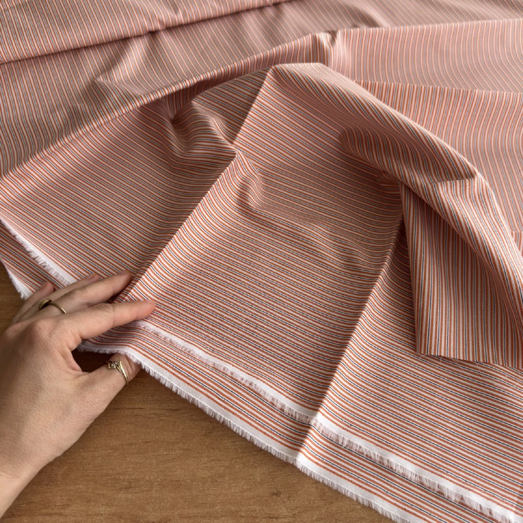 Vzorek - Košilovina oranžovo modrý proužek ba/PES