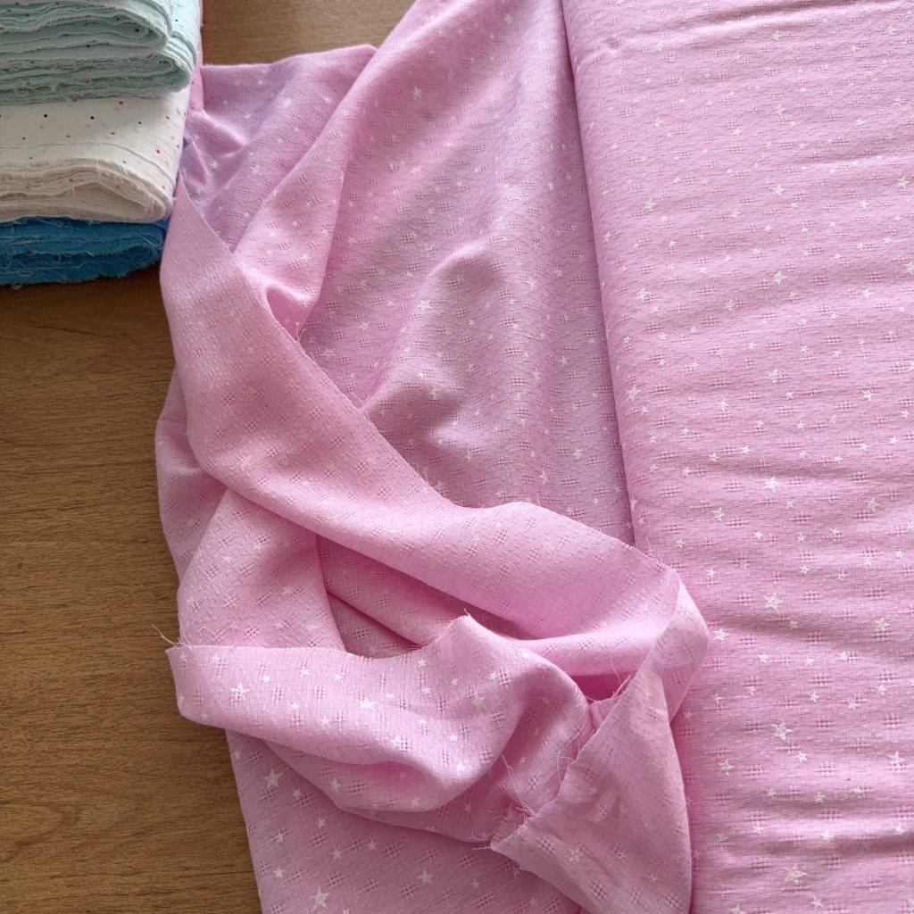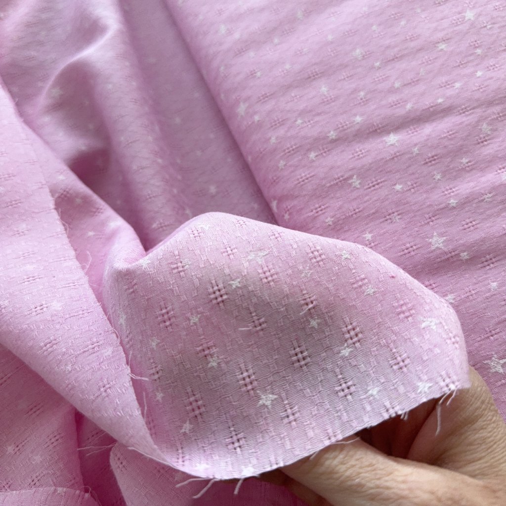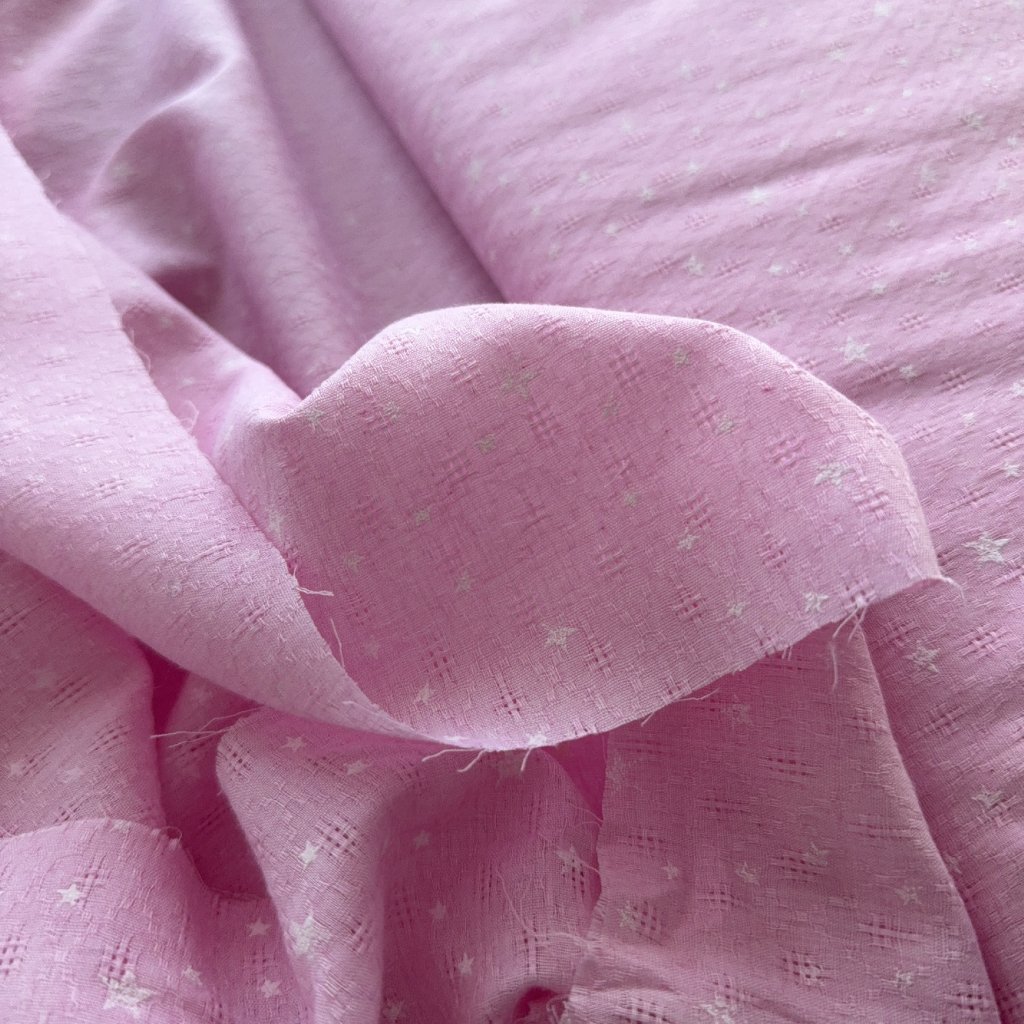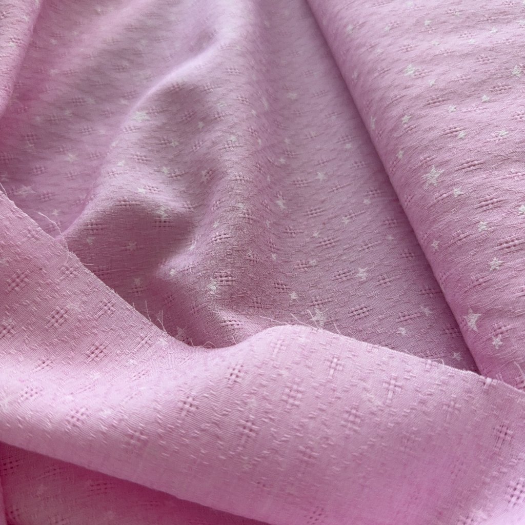 Vzorek - Lehoučký růžový popelín hvězdičky a ažura
