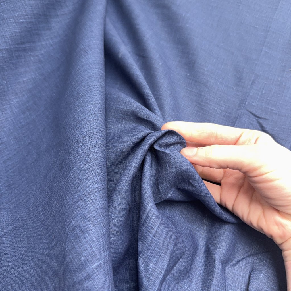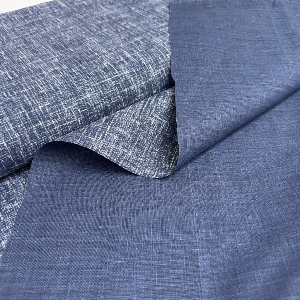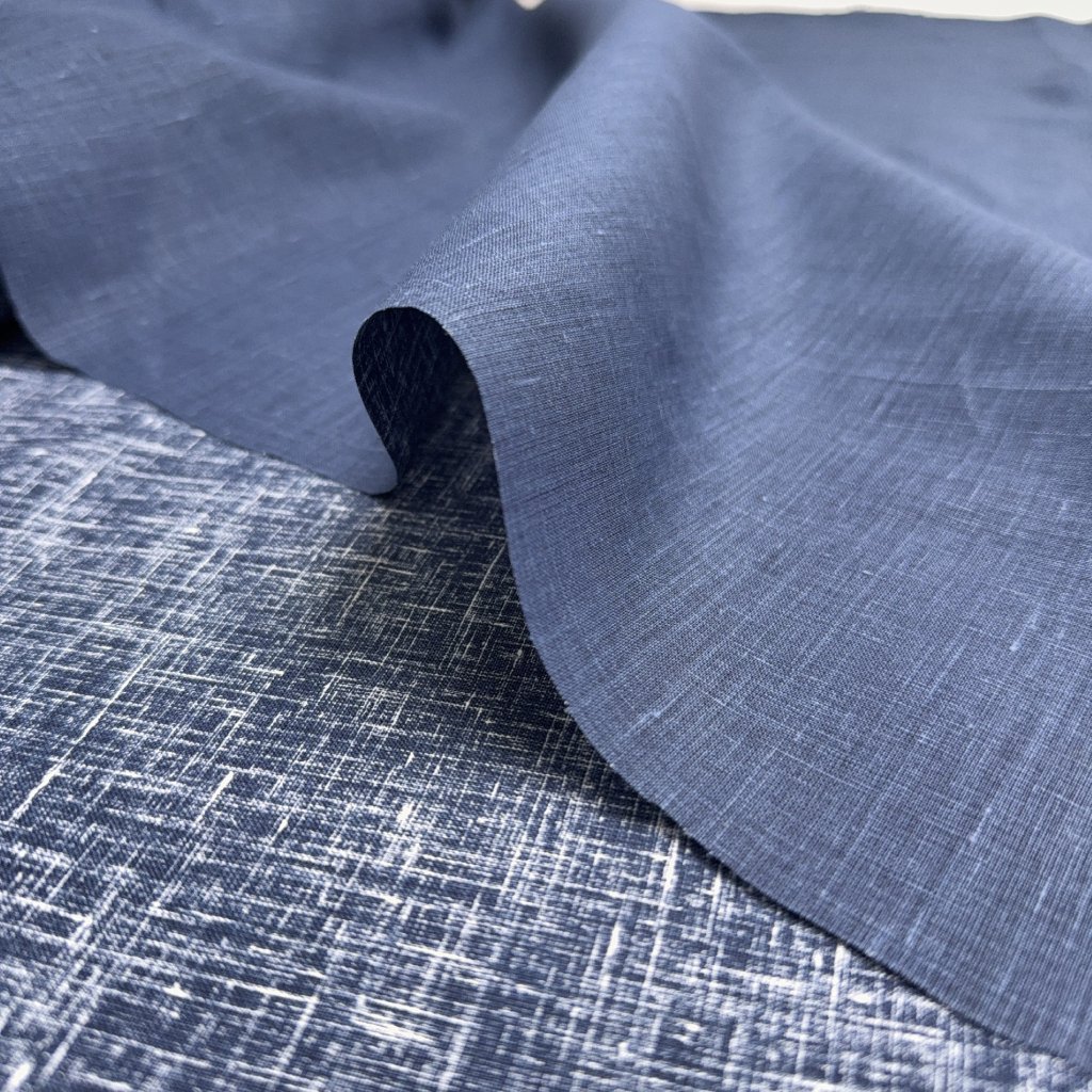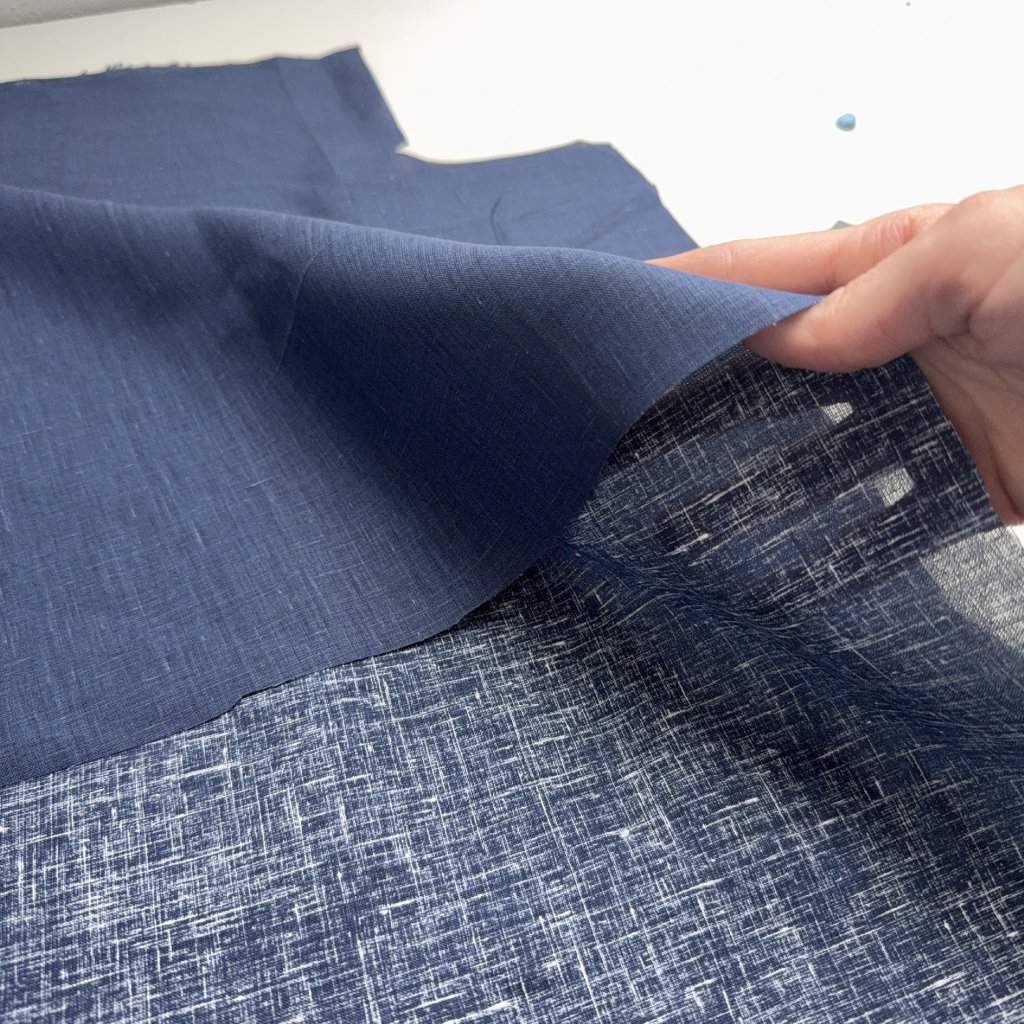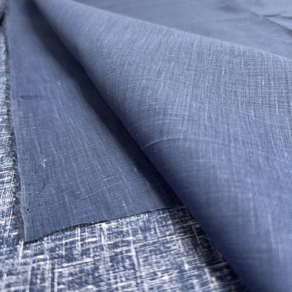 Vzorek - Lekhké ale pevné lněné poloteansparentní plátno indigový přetisk