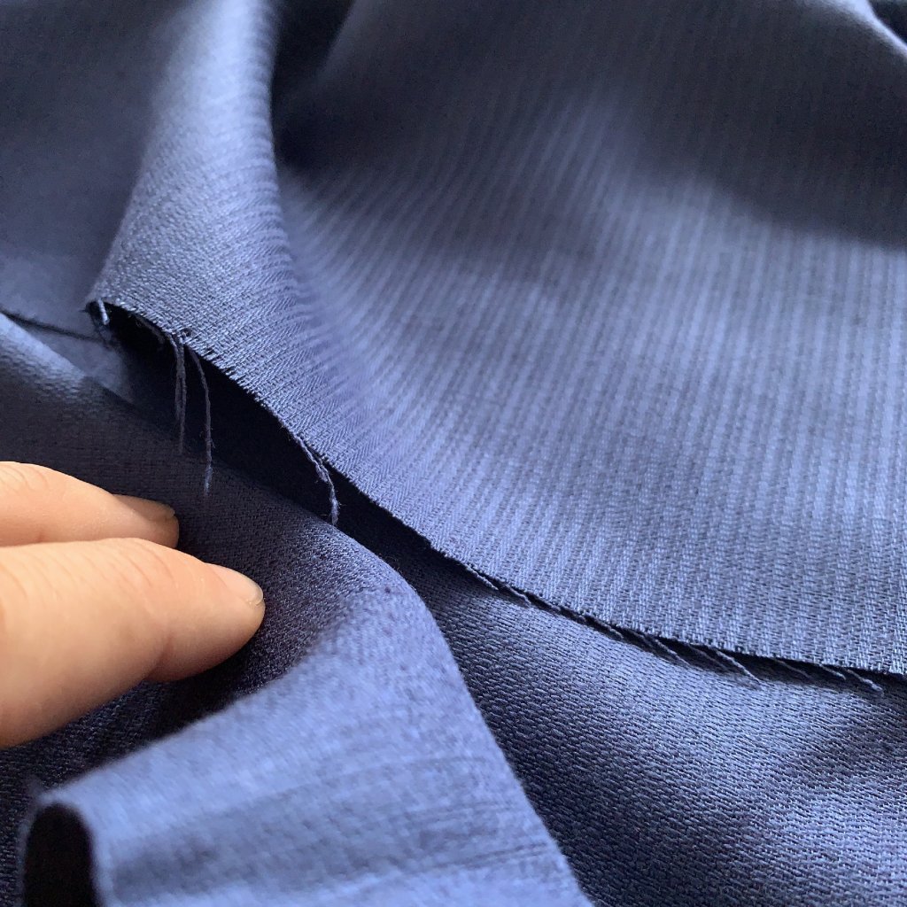 Vzorek - Modré košilové plátno, viskóza se lnem, jemný proužek