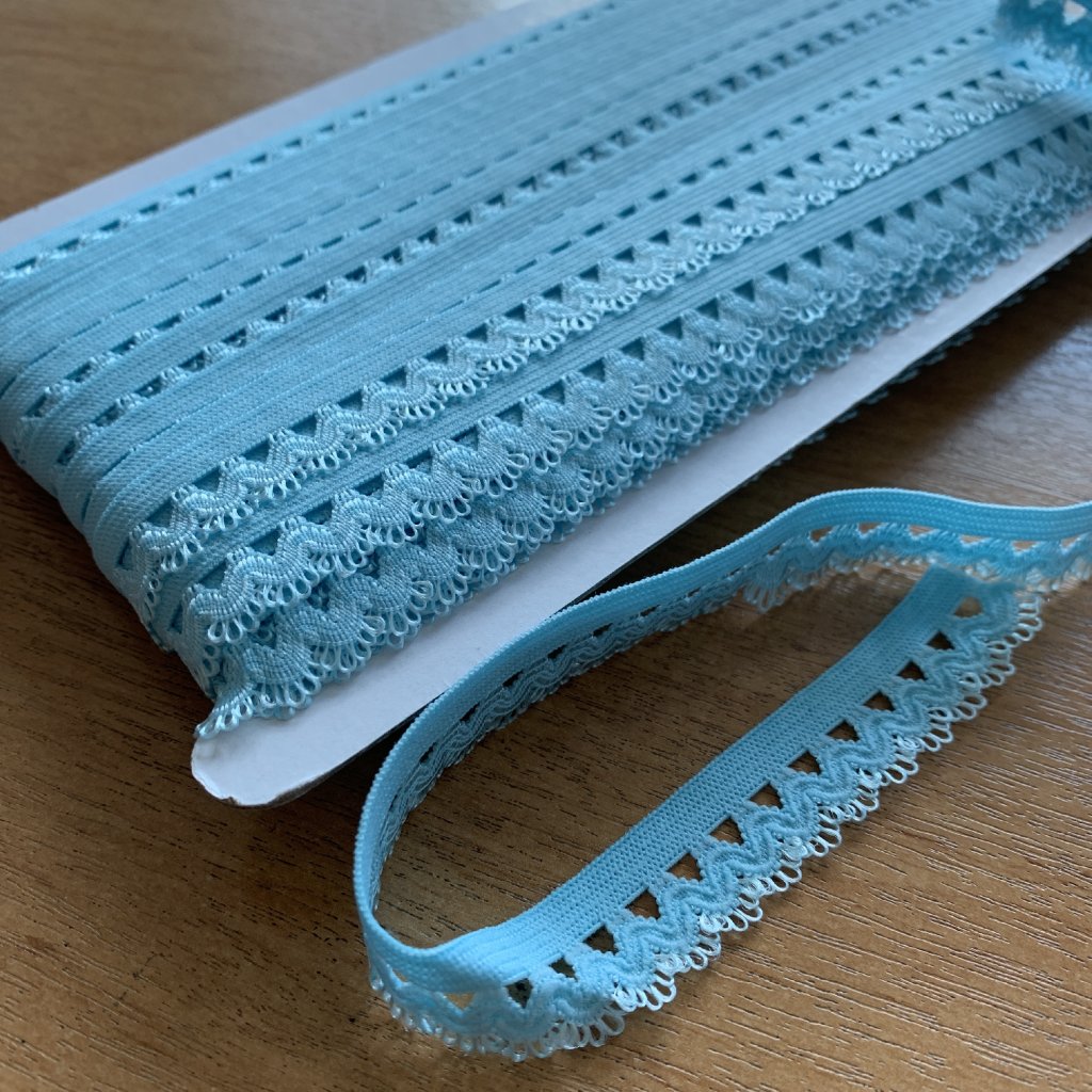 Vzorek - Ozdobná pruženka světle modrá šíře 1,5 cm