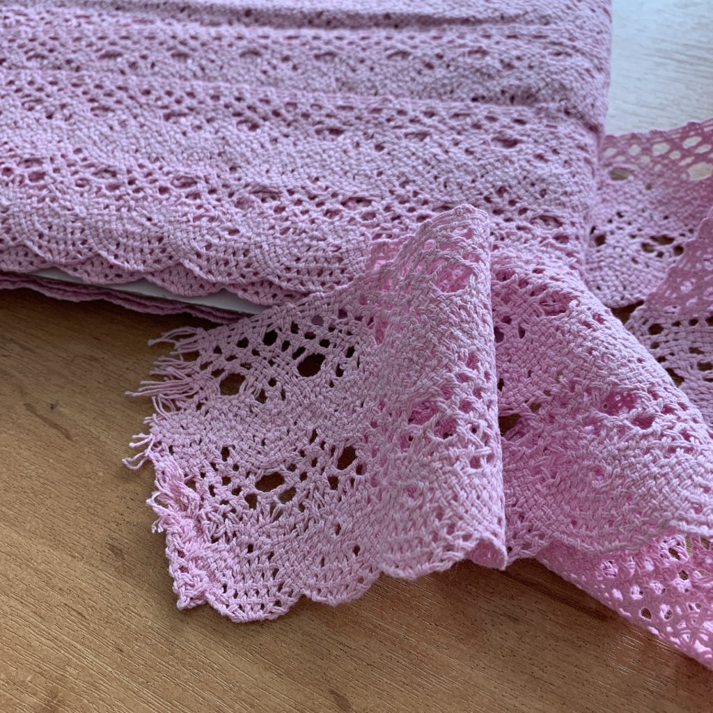 Vzorek - Paličkovaná krajka růžová šířka 7,5 cm