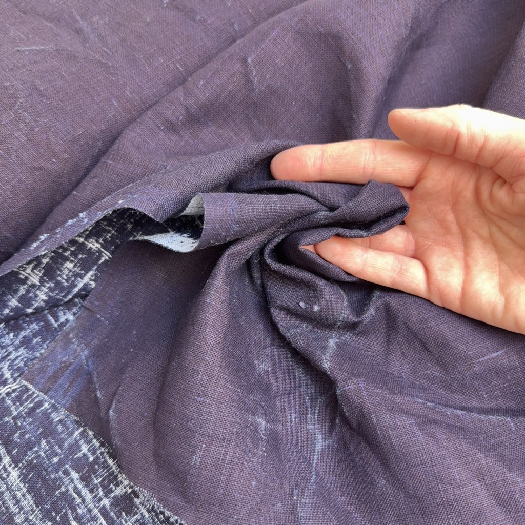 Vzorek - Pevné tužší lněné plátno s inkoustovým přetiskem, které bude umět stárnout
