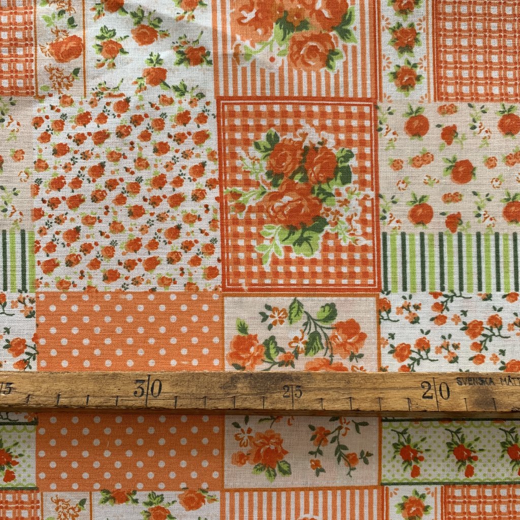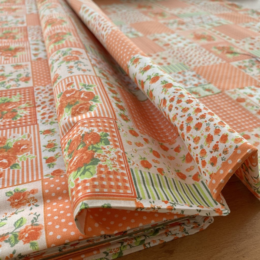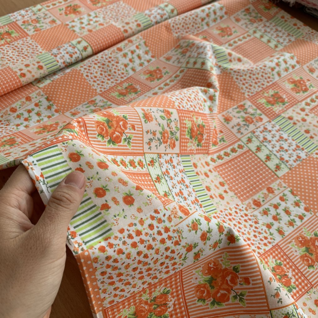 Vzorek - Retro bavlněné plátno čtverce patchwork s kvetinami a puntíky