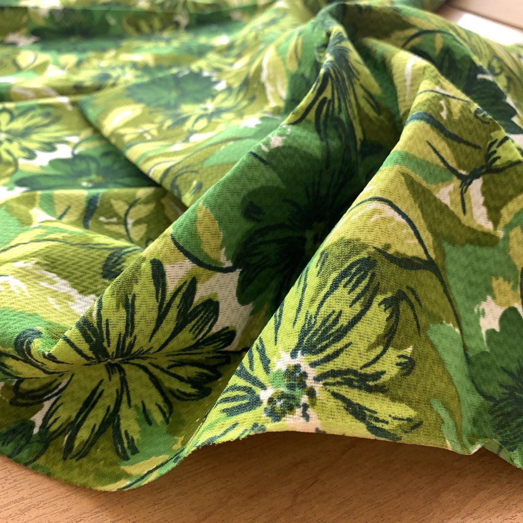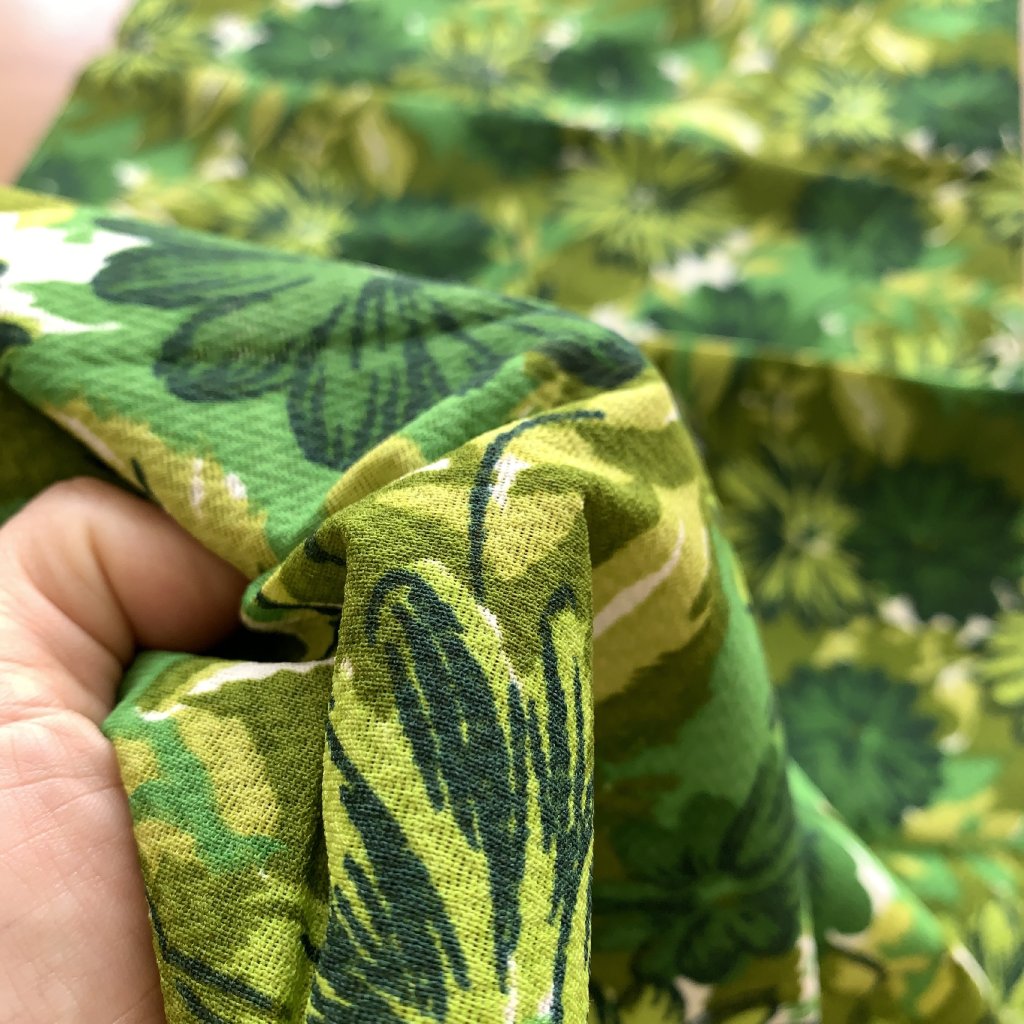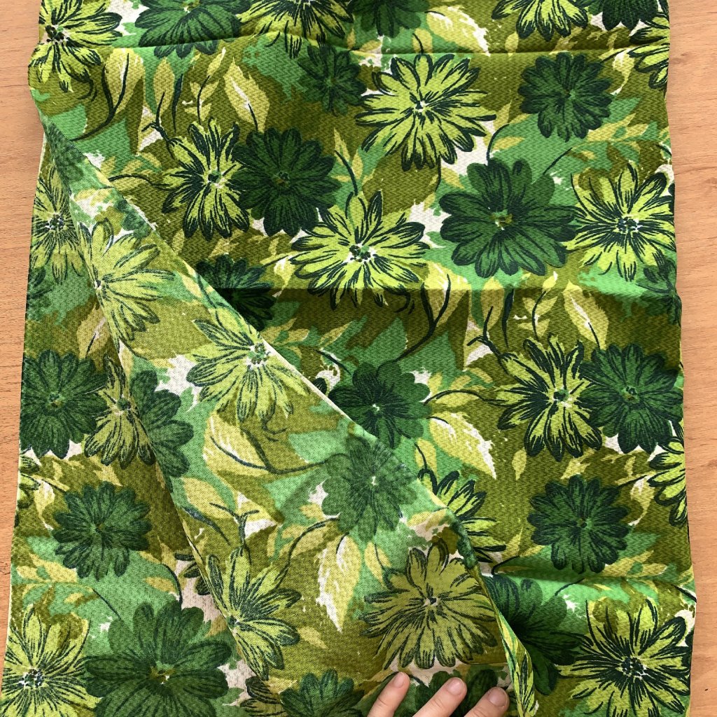 Vzorek - Retro tuhá dekorační látka zelené květy, syntetika