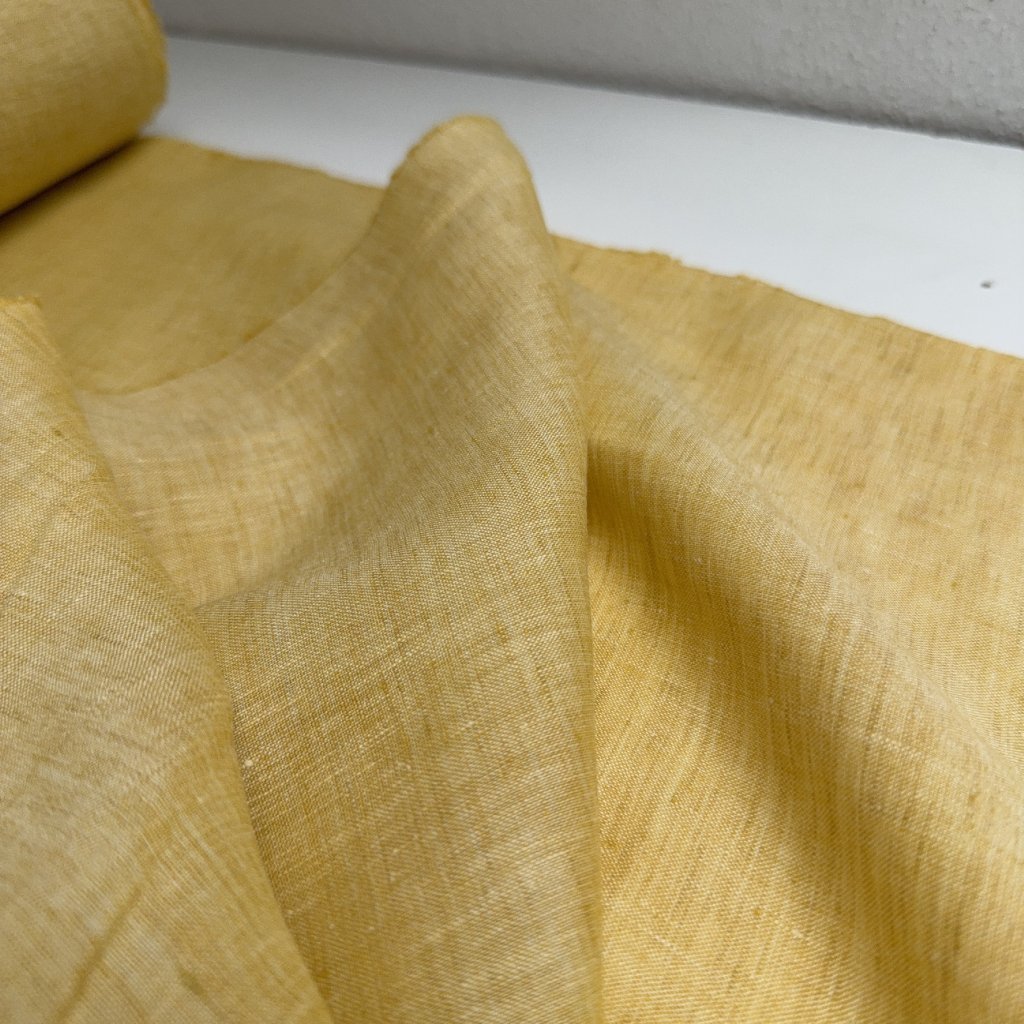 Vzorek - Slunečně třezalkové lehké lněné košilové plátno