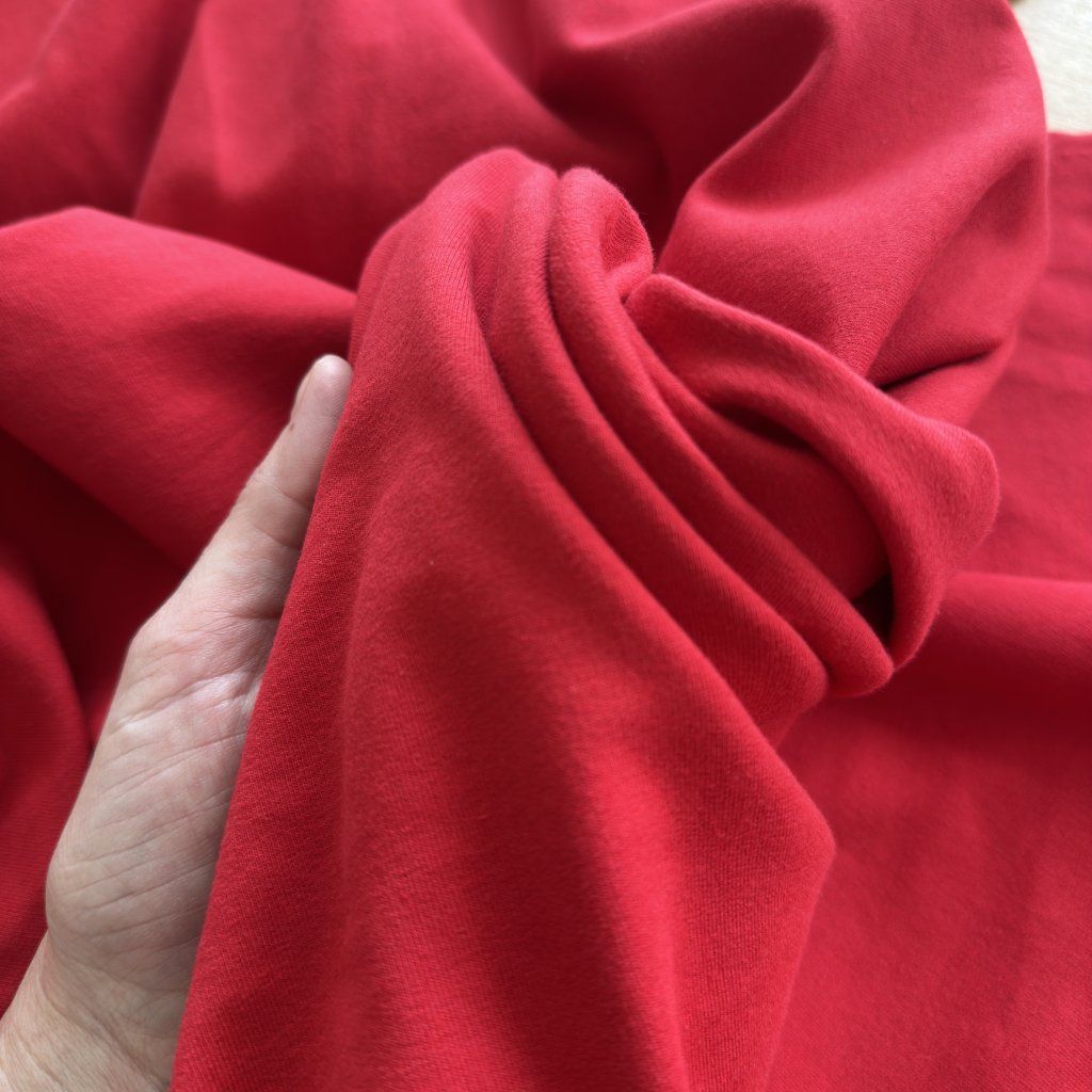 Vzorek - Teplákovina červená, bavlna s elastanem