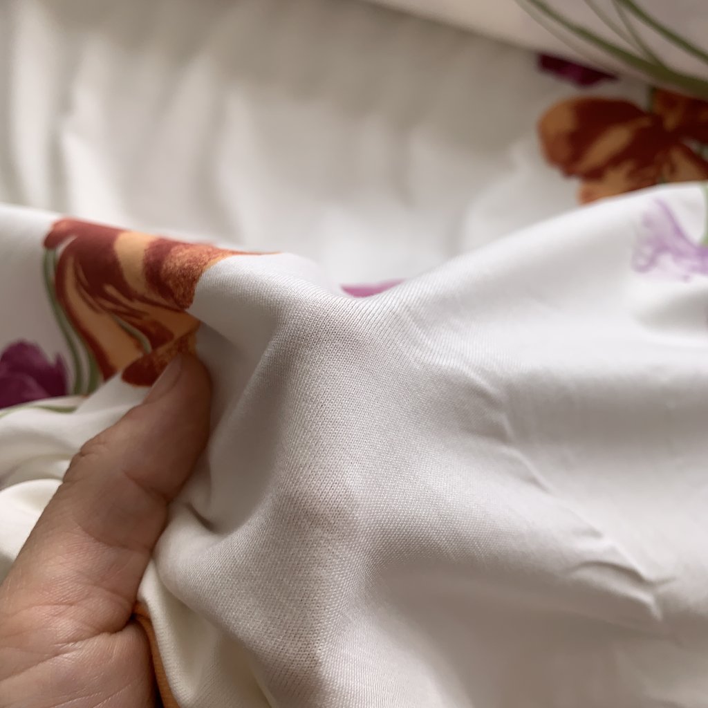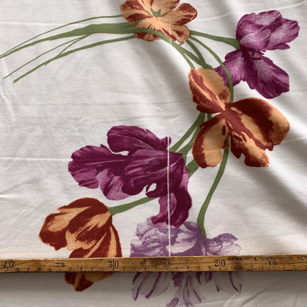 Vzorek - Tričkový bavlněný úplet velké květiny na kremově bílé