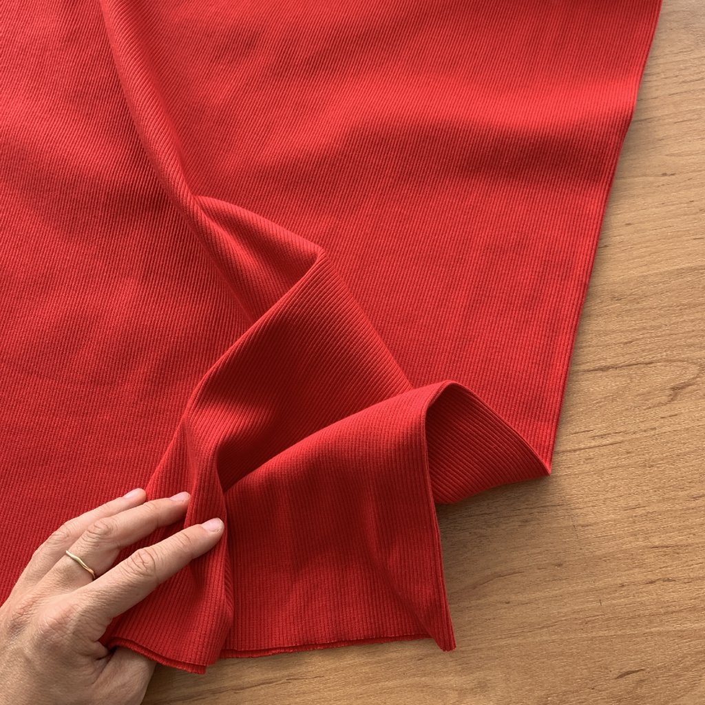Vzorek - Žebrovaný bavlněný úplet/náplet tunel červená Virulent
