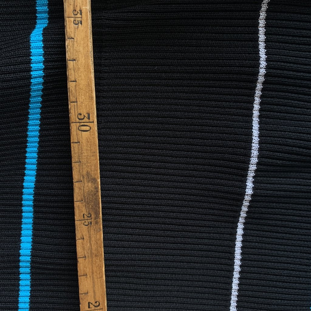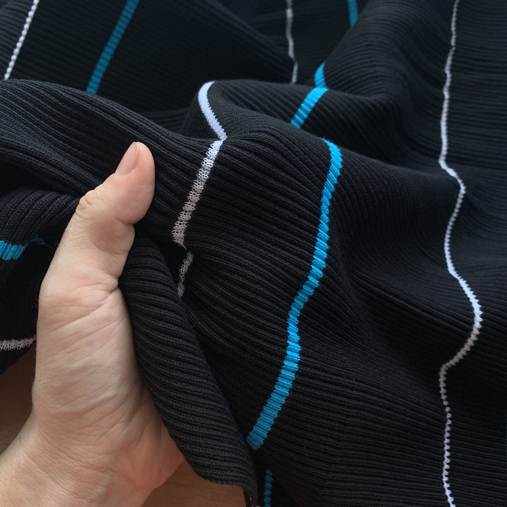 Vzorek - Žebrovaný těžký černý náplet s modrým pruhem