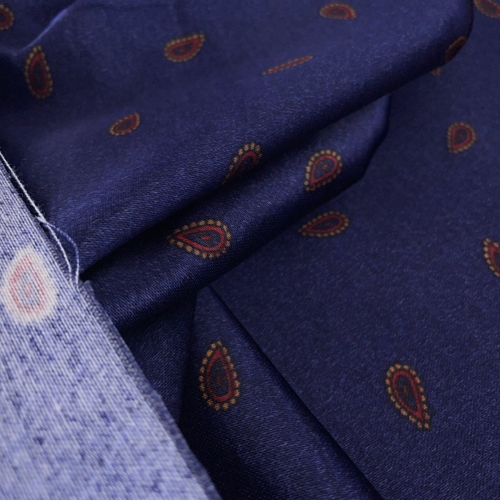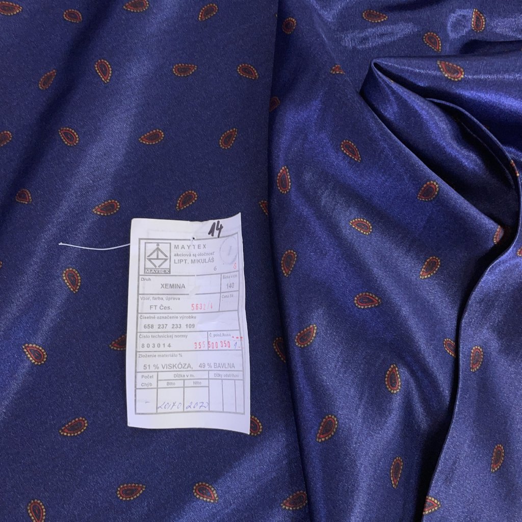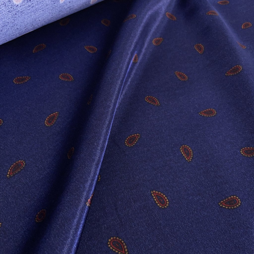 Županový satén, teplejší, paysley modrá/Maytex